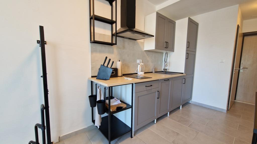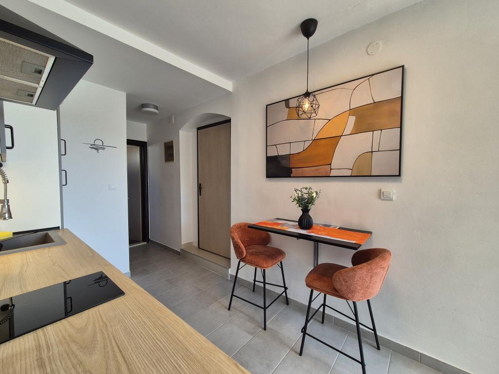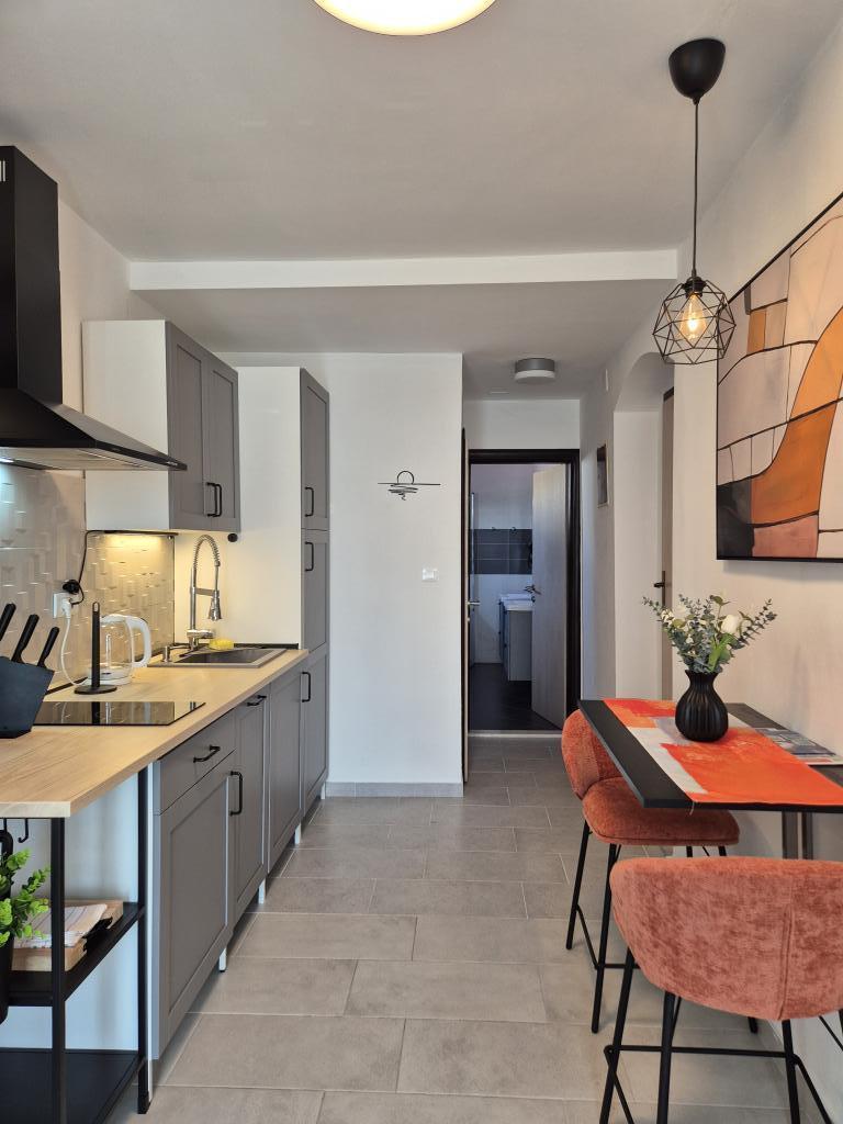 Apartamentul Skorin este situat într-o casă familială pe peninsula Rogoznica, situată în centrul orașului. Pe o raza de 300m se afla majoritatea facilitatilor si serviciilor pe care le ofera Rogoznica. Există 4 apartamente în clădire, astfel încât fiecare poate alege ceea ce li se potrivește cel mai bine. Apartamentele au fost renovate în 2017, 2022 și 2023. O nouă zonă de exerciții în aer liber a fost deschisă la 50 m de proprietate.