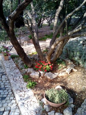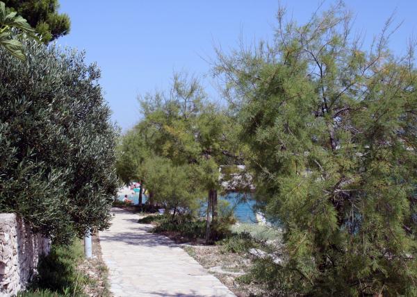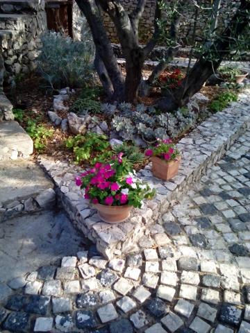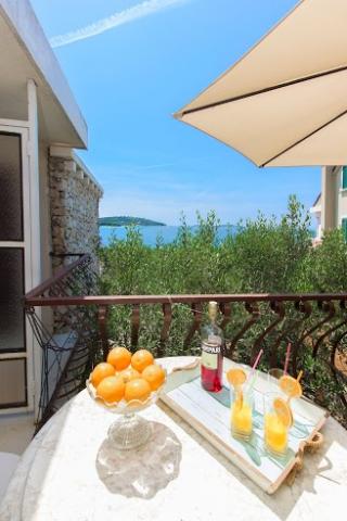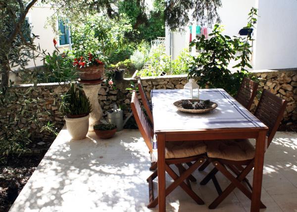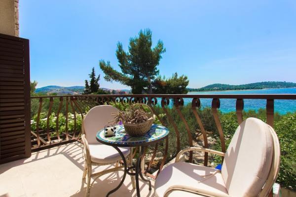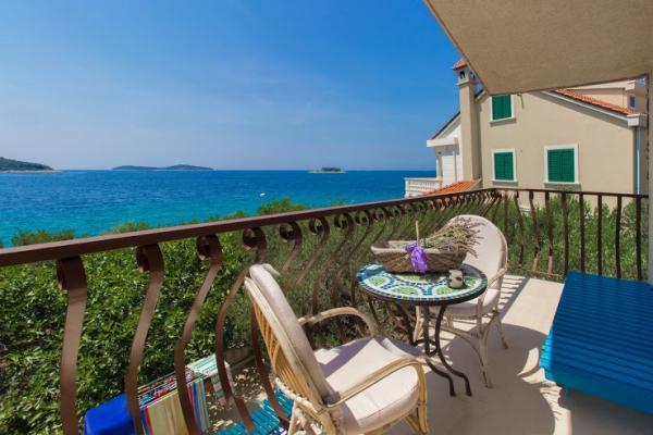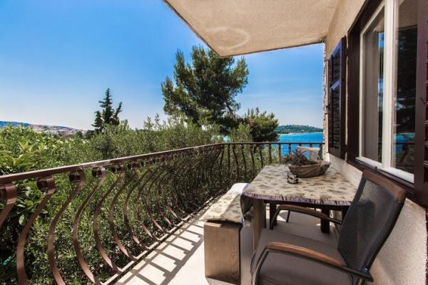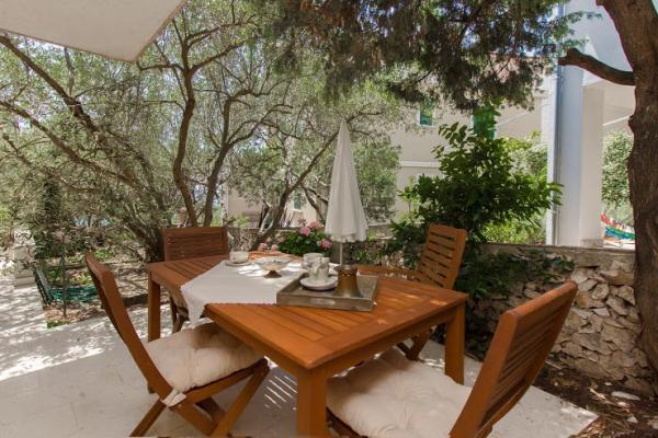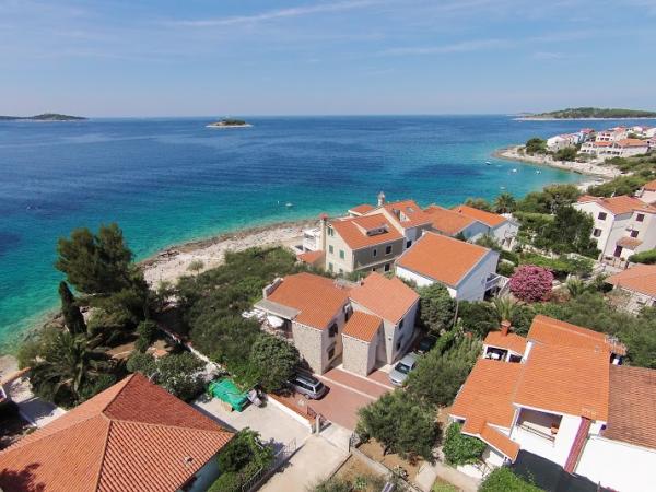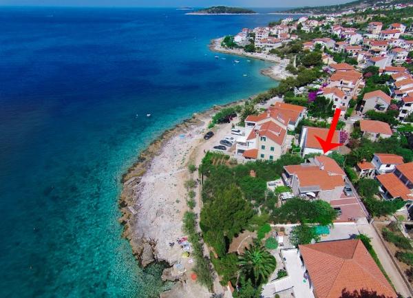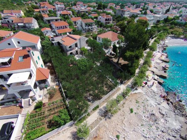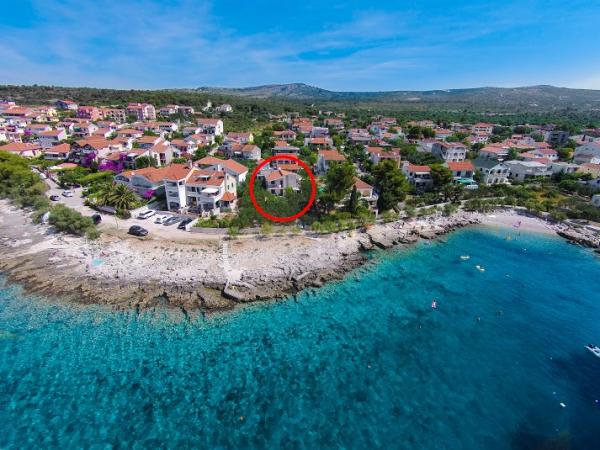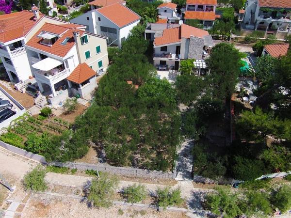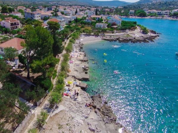 Apartamentele sunt situate într-o casă pe malul mării, pe un teren de 800m2. Casa este o grădină tipic dalmată (smochine, masline, lavanda, flori). Măsline fân oferă o umbră plăcută în zilele fierbinți de vară. In gradina exista un grătar, un duș, o cale de piatră iese pe plajă unde dană de acostare (gratuit). În spatele casei este o parcare mare, la centrul orașului, cu mers ușor la mare pentru 20 de minute. Aproape de casa este un bar frumos, unde, sub umbra de tamarisc se pot bucura de cafeaua de dimineață sau în apus de soare, cu un pahar de bere .... Există trei apartamente și proprietarilor de apartamente pentru a ajuta în orice moment discret disponibil. Vorbim engleză, franceză și taljanski. Apartamentele sunt dotate cu mobilier de calitate în parte manual (dulapuri de perete), lenjerie de pat, prosoape, prosoape de bucatarie, vase, ustensile, aparate mici sunt o parte integrantă. Pe balcon sunt mese, scaune, umbrele, scaune de plajă. Podele de marmură și scări și balcoane Dalmatian alb de piatră.