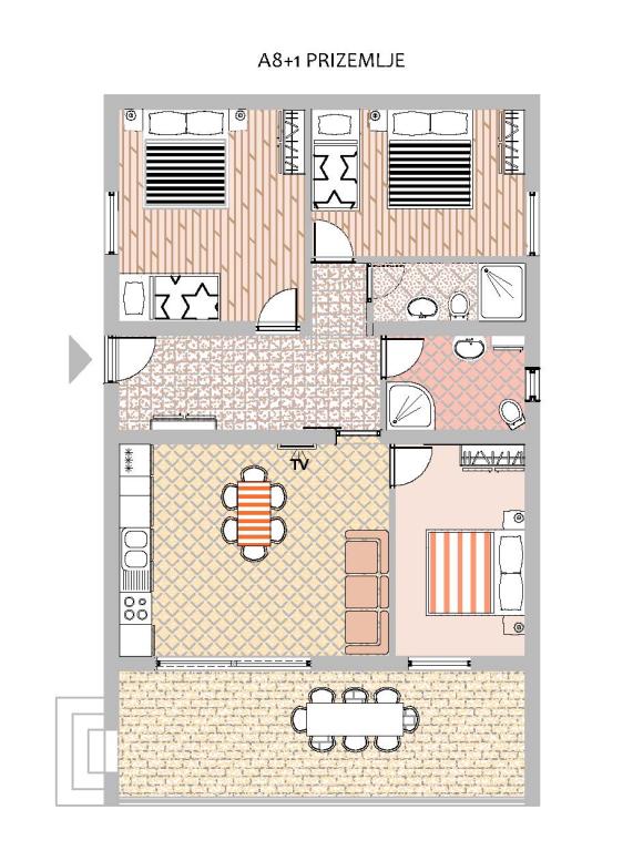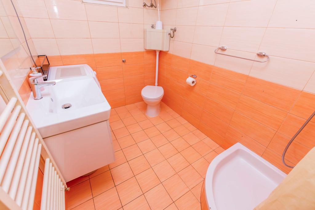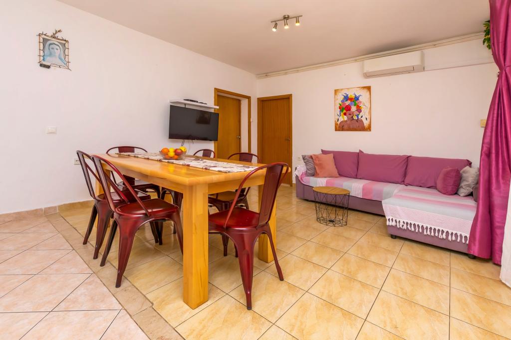 Apartamente mobilate de 3 stele. Apartamentul A- 8 1, parter, potrivit pentru scaune cu rotile, terasă mare, 3 aparate de aer condiționat, 2 toalete, plajă, la 40 m distanță, potrivit pentru copii, grădină mare, grătar, duș exterior, parcare protejată de soare. Promenadă frumoasă de-a lungul mării, de la apartament până în centru (aproximativ 2000 m). Animale de companie permise la cerere. Pentru turiștii noștri operăm un transfer de la aeroportul Split - Rogoznica. Piste de biciclete mobilate, la aproximativ 100 km. Pace, liniște, climă blândă, soare, plimbare pe malul mării, odihnă pentru suflet și trup. Dragi prieteni, suntem la cea mai apropiată mare caldă, bine ați venit la noi! Apartamentul A9, etajul 1, balcon mare, vedere frumoasă la mare, 2 balcoane mai mici, 3 aparate de aer condiționat, 3 toalete, grătar, parcare. Bine ați venit la noi!