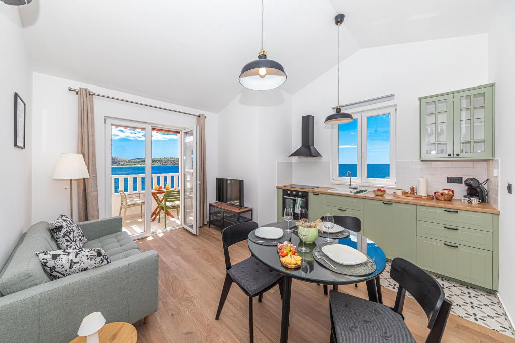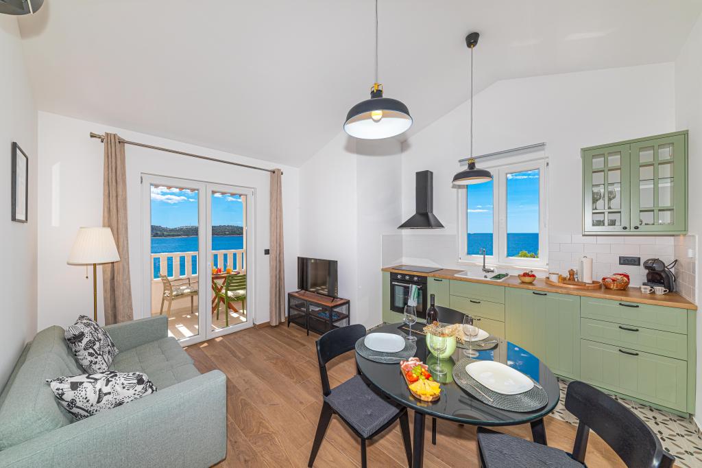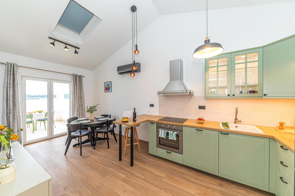 Vila Orazur - Situata in pitorescul oras Rogoznica, aceasta vila este situata in primul rand pe malul marii, la doar 10 metri de plaja. Ideala pentru turismul de familie, vila ofera o experienta extraordinara a marii albastre si relaxare completa. La primul etaj al vilei se afla doua apartamente complet noi si utilate modern. Fiecare apartament emană căldură și confort, cu interioare spațioase și detalii atent selectate. Terasele cu vedere spectaculoasa la mare sunt locul ideal pentru a savura cafeaua de dimineata sau pentru a va relaxa seara cu sunetul valurilor. Terasele sunt suficient de spatioase pentru a servi drept sufragerie in aer liber, unde va puteti rasfata din plin cu farmecul vietii mediteraneene. Apartamentele sunt dotate cu toate facilitățile moderne pentru a vă face șederea cât mai plăcută și lipsită de griji. Pe lângă cazare de calitate superioară, vila oferă și parcare securizată, care vă permite o sosire fără griji și acces ușor la toate atracțiile locale.