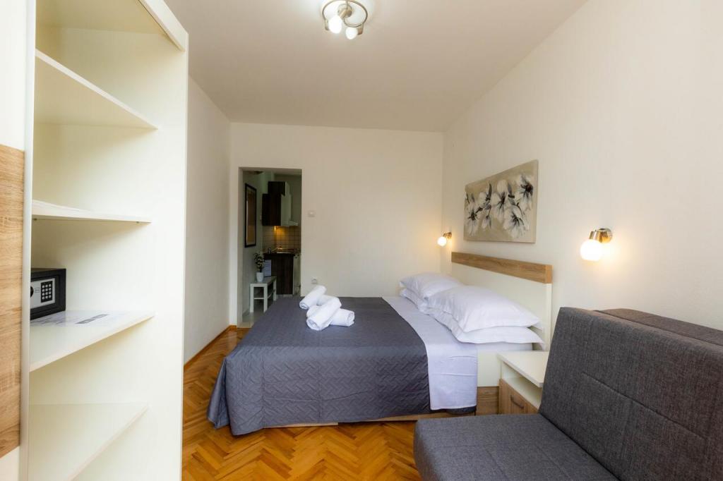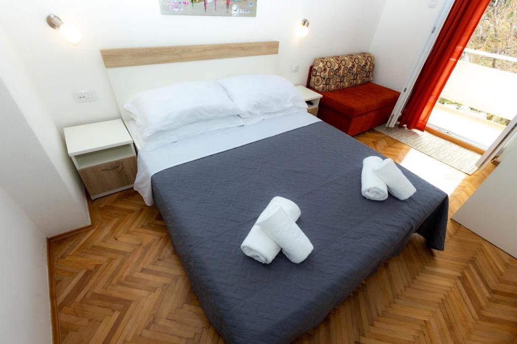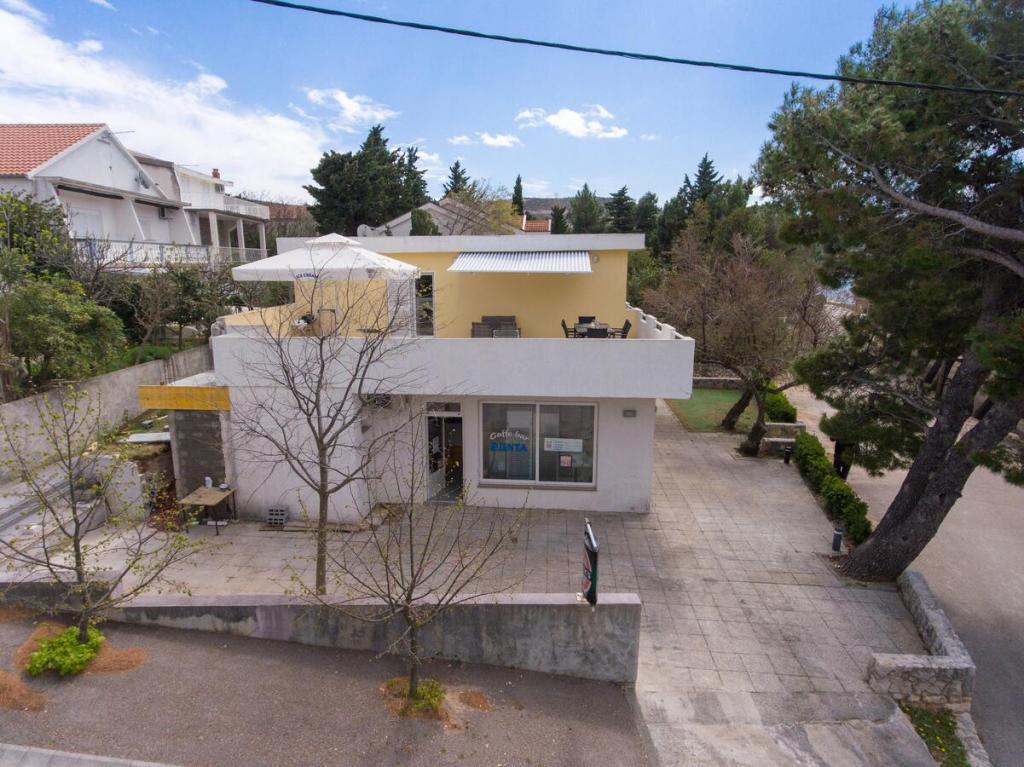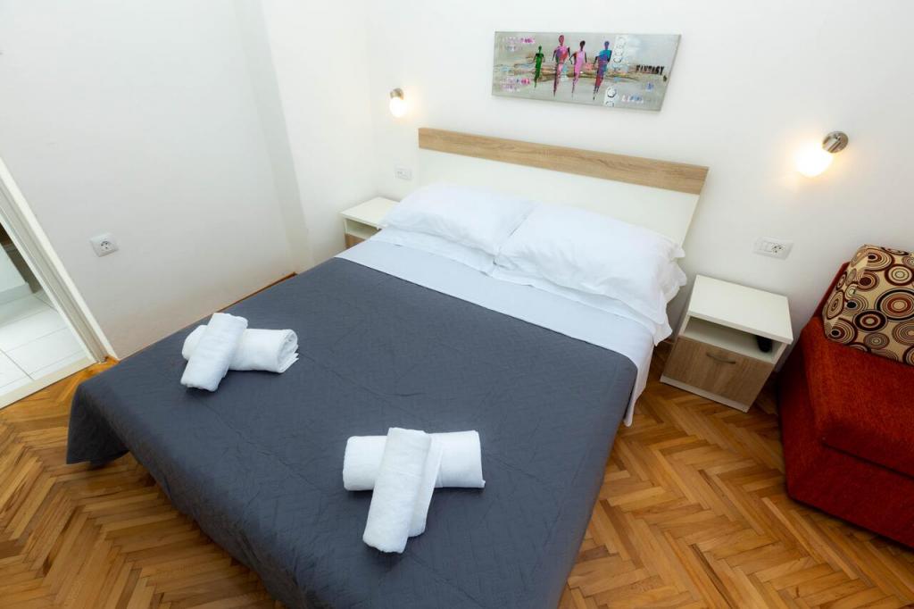 Apartments Punta este situat în micul oraș Rovanjska de la poalele Velebitului, la 30 km de Zadar. Acestea sunt situate în zona turistică a satului primul rând până la mare, la doar 3 metri de plajă. Terasa oferă o vedere frumoasă la mare și un apus deosebit de frumos. Apartamentele sunt moderne și complet echipate. Acestea sunt situate la primul etaj al clădirii turistice, iar sub terasă există o cafenea zilnică, liniștită, care nu funcționează noaptea și nu interferează cu șederea în apartamente. Orașul Rovanjska este situat la poalele ieșirii autostrăzii (Maslenica), care oferă un acces excelent la șosea. locul în sine găzduiește și Peștera Modrică Aventură. .