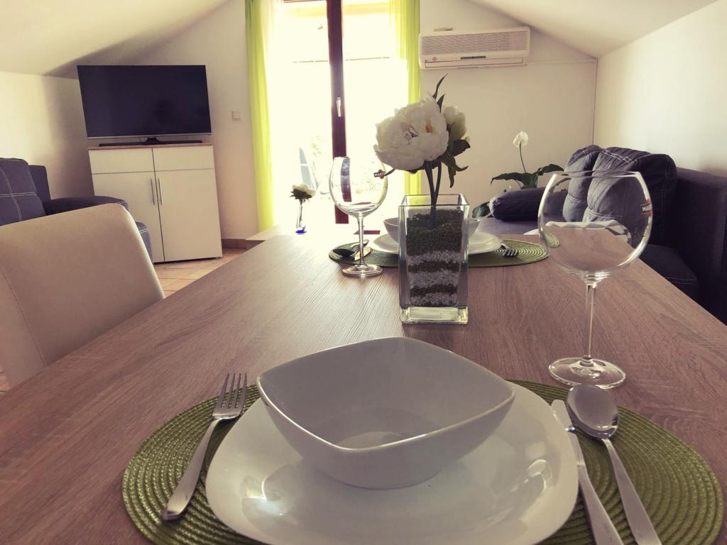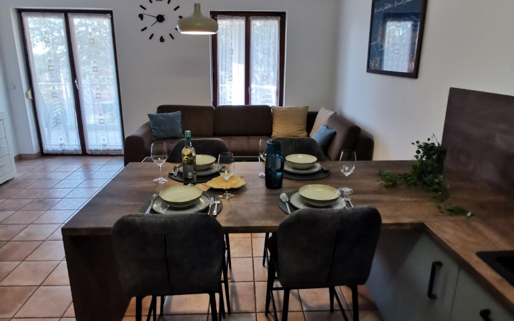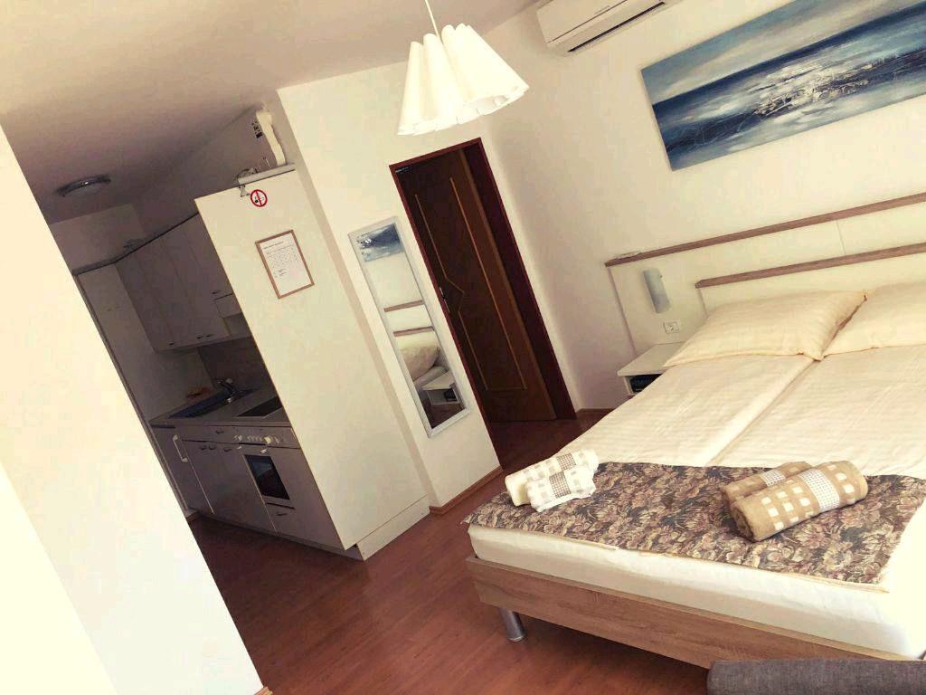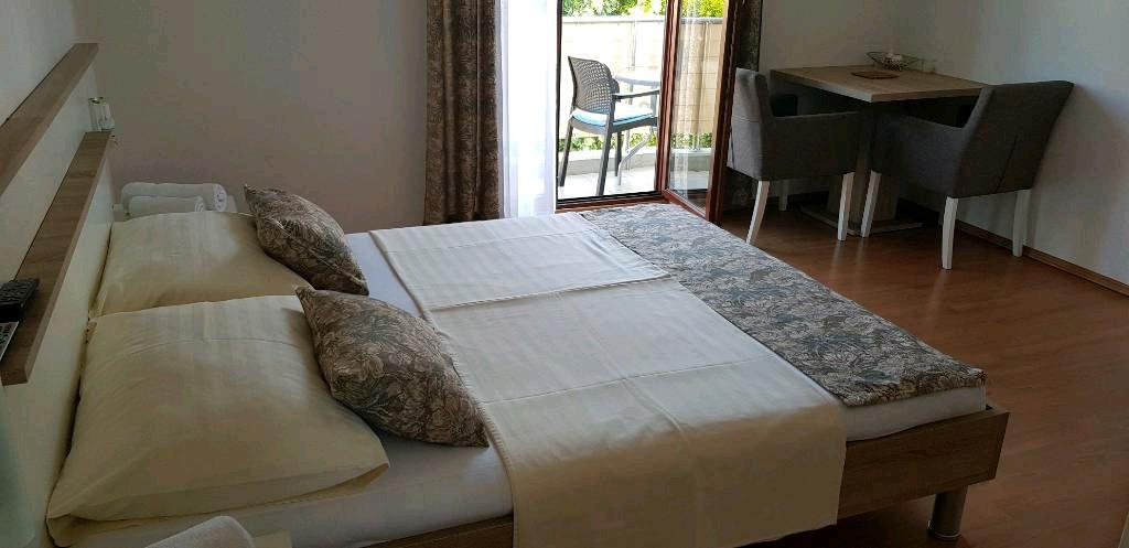 Casa se află într-o locație liniștită, fără trafic. La plajă, pietricele mici și restaurantele sunt la 150m. Ideal pentru copii. Bicicletele pot fi utilizate gratuit. În fața casei este un mic parc. Fiecare apartament este bine echipat cu tot ce aveți nevoie pentru o vacanță plăcută. Avem o mulțime de oaspeți obișnuiți, care sunt foarte mulțumiți. Magazin alimentar 300m. Spre centru 2km.
