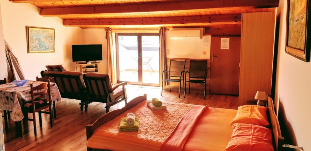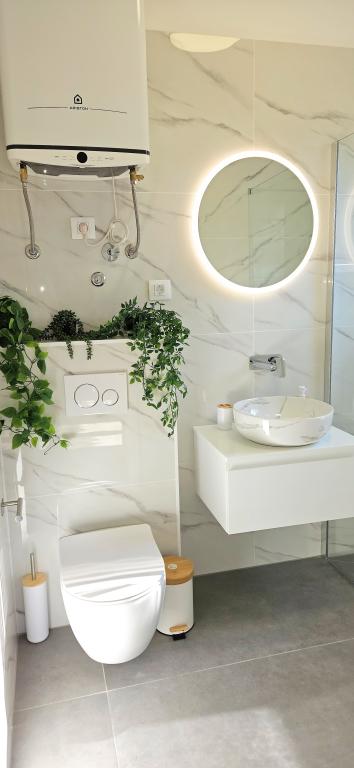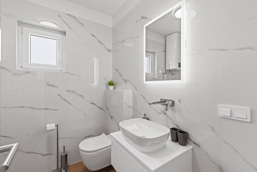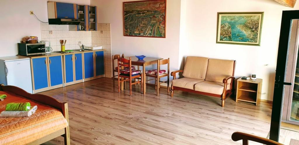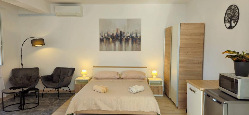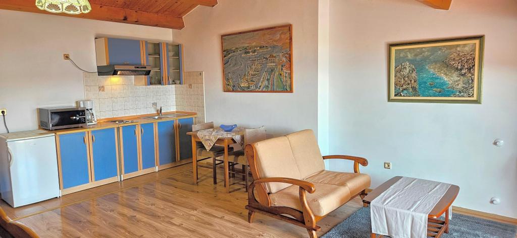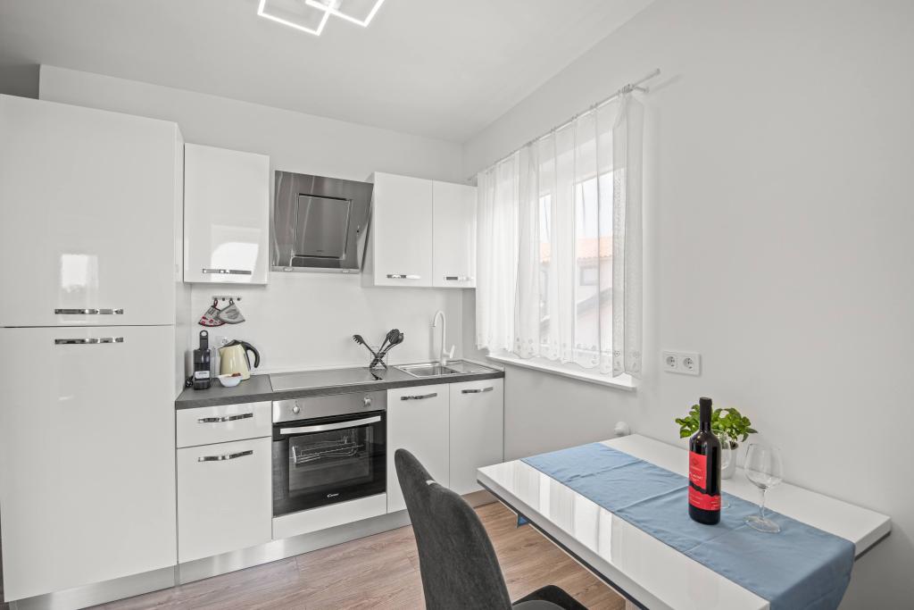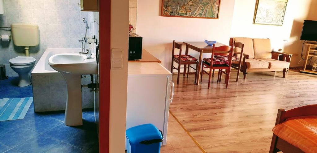 Locația este fantastică. Pentru alimente de bază, Konzum este la 400 m distanță, lângă un restaurant și o tavernă, iar cel mai important, plaja este vizavi! Pe plajă un bar minunat. Plaja este cu pietriș și bună pentru copii. Șefii sunt oameni minunați, ospitalieri și rezonabili. Parcarea se află în fața apartamentului. Se află la aproximativ 1,5 km distanță de centru, mergând de-a lungul mării. Am doar cuvinte de laudă!