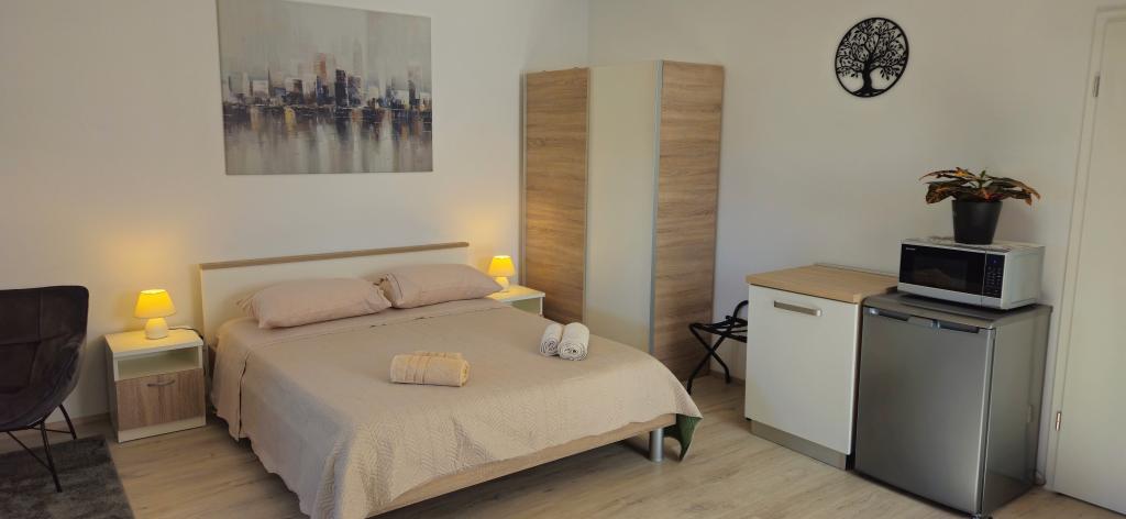 Un loc foarte mișto. Apartament pe drum, dar foarte liniștit. Balcon cu vedere la mare și Rovinj. Parcare liberă. Plaja foarte aproape. Cu siguranță vom reveni acolo. Salut proprietarii.