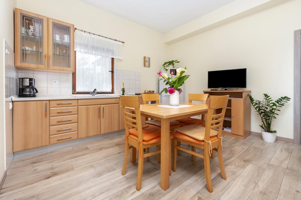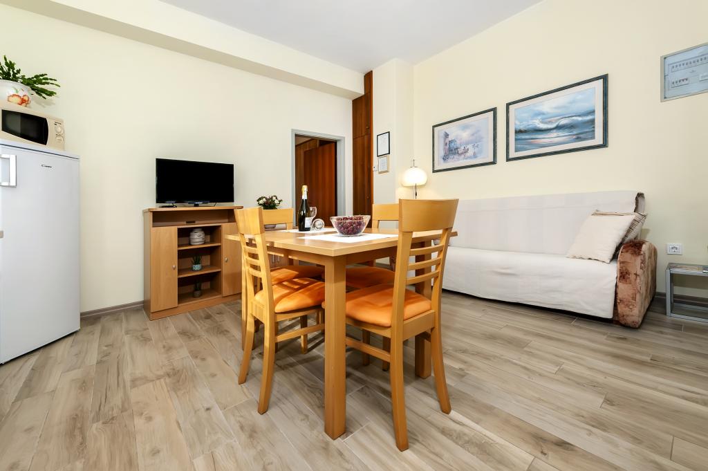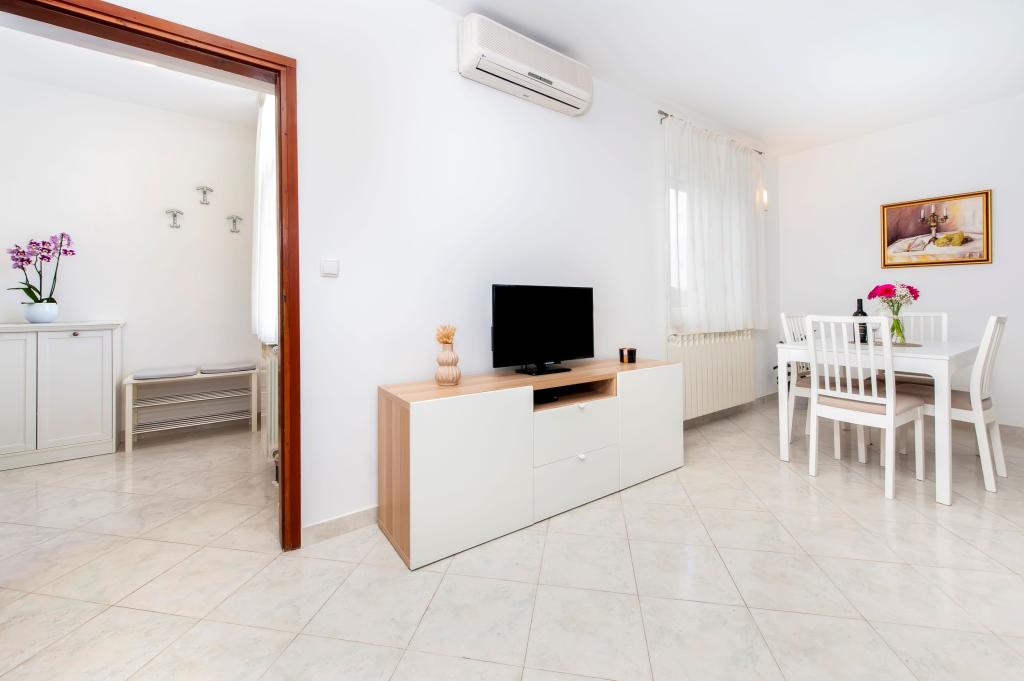 Pătuț și scaun înalt pentru copii la cerere, gratuit. Apartamentele sunt complet utilate și au aer condiționat. Prețul include lenjerie de pat, prosoape pentru utilizare în apartament, utilizarea aerului condiționat, WIFI, un loc de parcare per apartament în curte. Schimbarea lenjeriei de pat și a prosoapelor se face la cerere. Mașină de spălat în apartamentele A2+1 SANDRA și A4+1 SANDRA. Mașină de spălat vase în apartamentul A4+1 SANDRA.