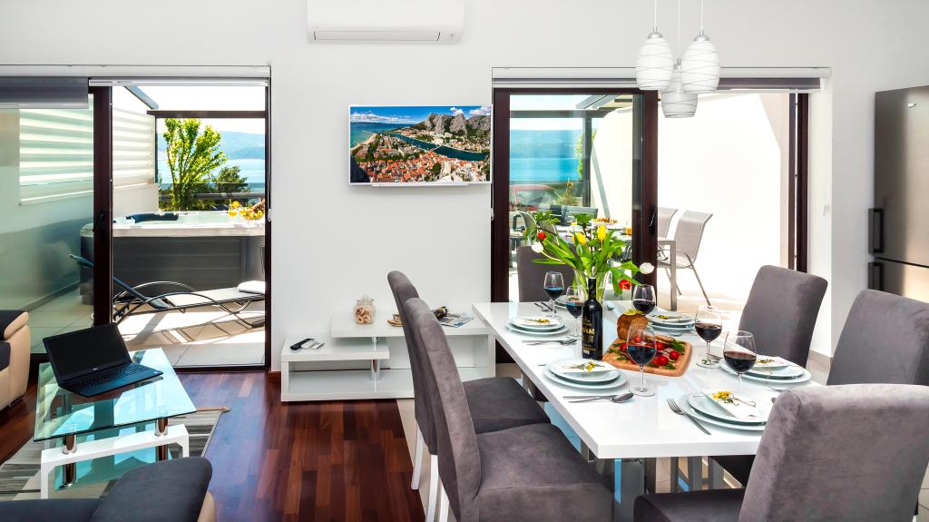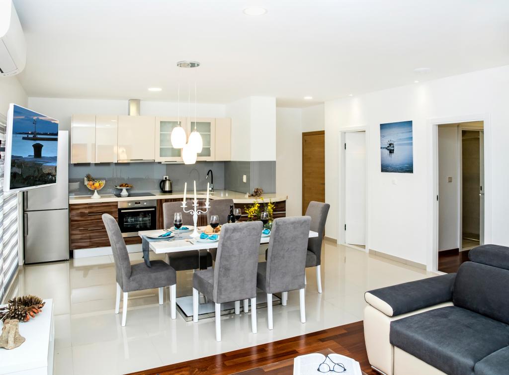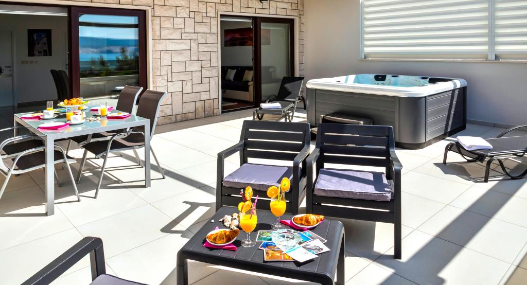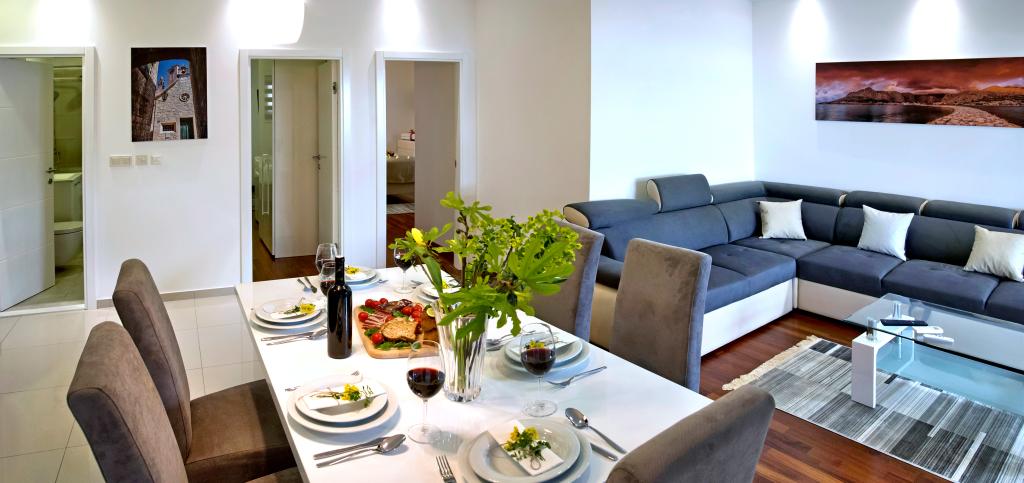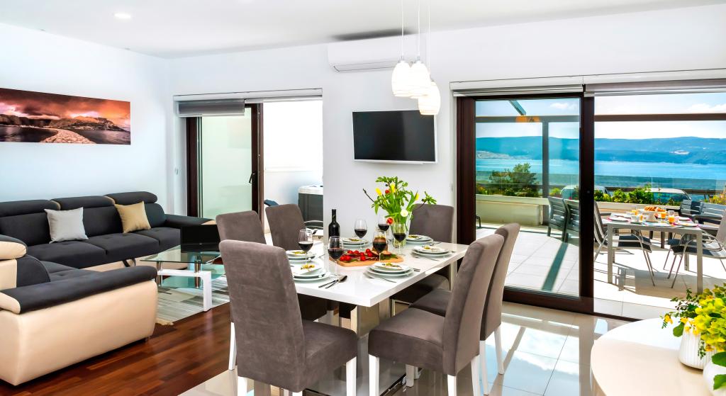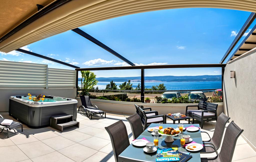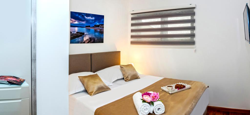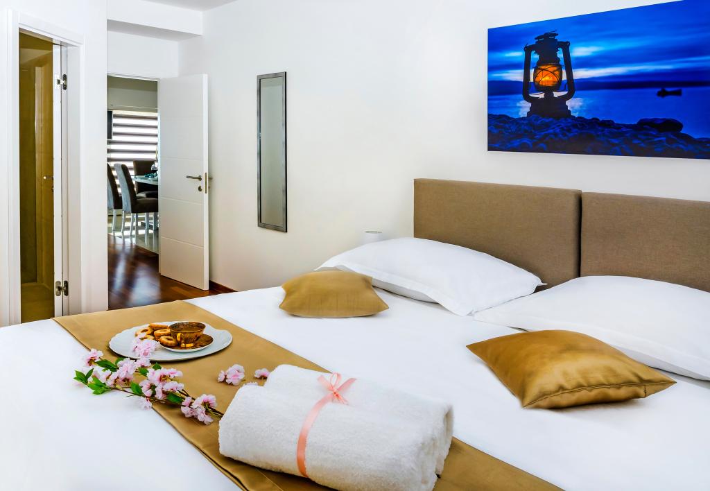 Facilitatea „Adria Croatica” dispune de 4 apartamente dotate luxos cu 4 stele, vedere la mare si parcare gratuita. Este situat la 100 m de mare, iar la plaja se poate ajunge cu metroul situat langa bloc. Apartamentele sunt complet si modern utilate cu mobilier de calitate. Sunt ideale pentru o ședere mai lungă, în timp ce căzile cu hidromasaj o fac relaxantă. Unitățile au 2 dormitoare, 2 băi, bucătărie, living, sufragerie, terasă sau balcon. Sunt dotate cu camere izolate fonic, aer condiționat, internet gratuit, canale prin satelit,...