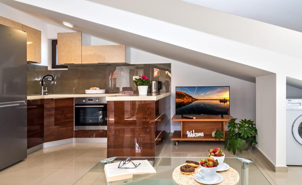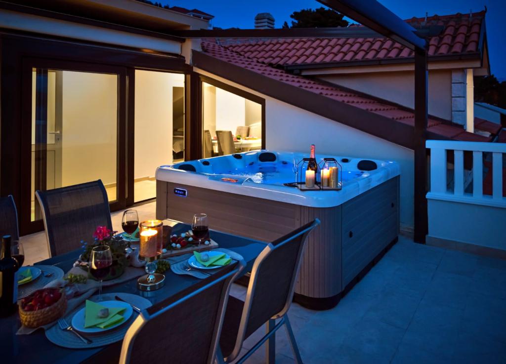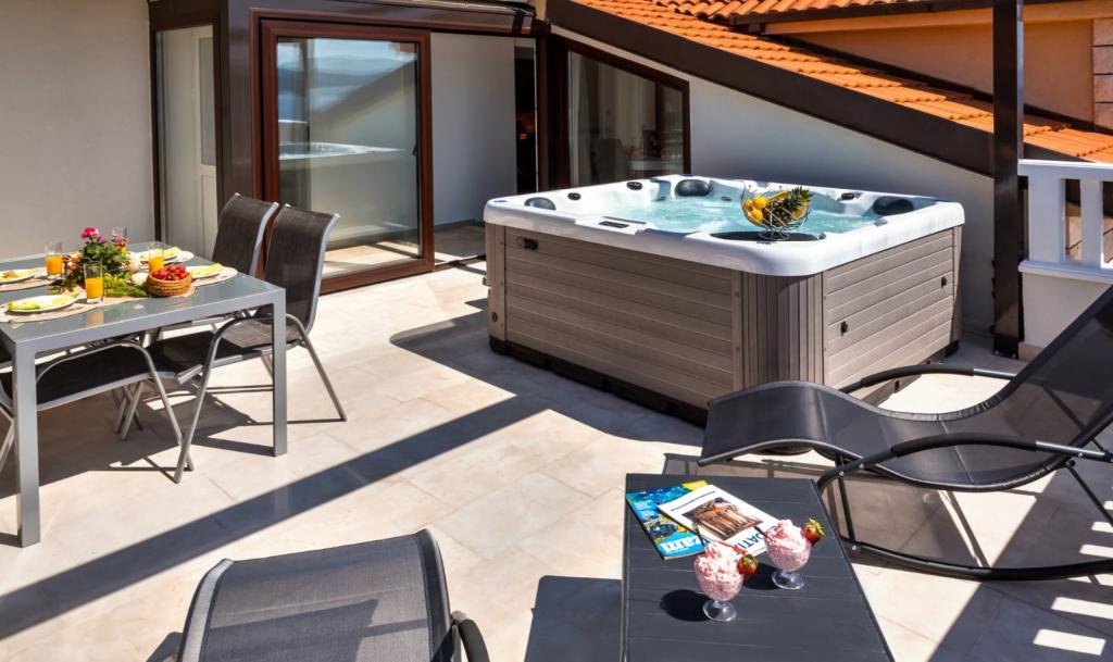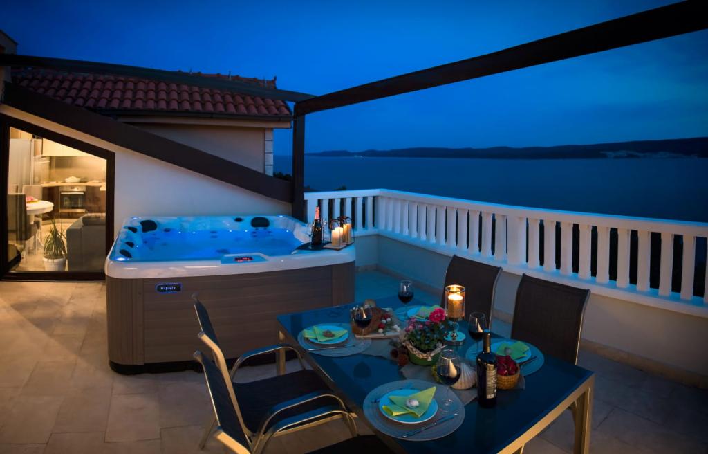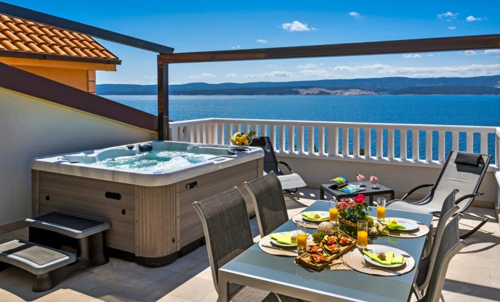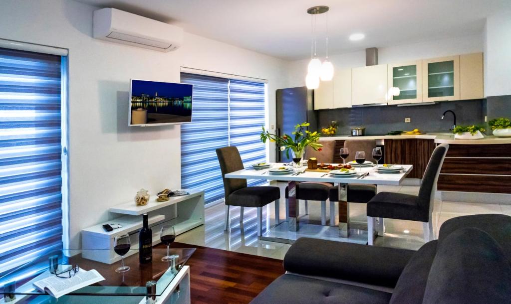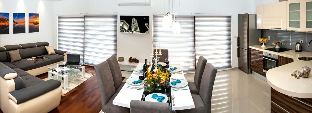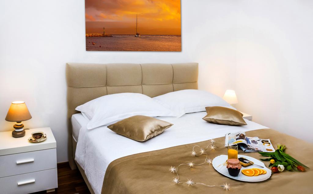 Facilitatea „Adria Croatica” dispune de 4 apartamente dotate luxos cu 4 stele, vedere la mare si parcare gratuita. Este situat la 100 m de mare, iar la plaja se poate ajunge cu metroul situat langa bloc. Apartamentele sunt complet si modern utilate cu mobilier de calitate. Sunt ideale pentru o ședere mai lungă, în timp ce căzile cu hidromasaj o fac relaxantă. Unitățile au 2 dormitoare, 2 băi, bucătărie, living, sufragerie, terasă sau balcon. Sunt dotate cu camere izolate fonic, aer condiționat, internet gratuit, canale prin satelit,...