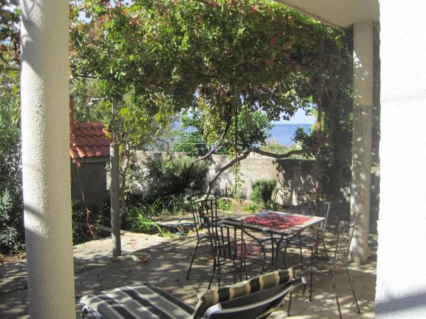 Perfectă pentru turiștii cu mașina, romanticii care iubesc singurătatea, plaja curată. Puțini oameni pe plajă, locuințe la 2-3 pași, ieșiți pe poartă - și aveți propria plajă, fiecare vilă are propriile șezlonguri, există un pin imens sub care încap toți turiștii. Există un balcon minunat cu vedere la mare, dedesubt cresc kiwi, o mică grădină cu portocale sau lămâi, o zonă de grătar. Saltelele sunt confortabile, paturile sunt late. Singurul lucru a fost că era foarte cald în dormitoare, deoarece aerul condiționat este doar în bucătărie. Există o canapea acolo. Am cerut ventilatoare și ni le-au dat. Dar ar fi fost mai bine să existe aparate de aer condiționat.