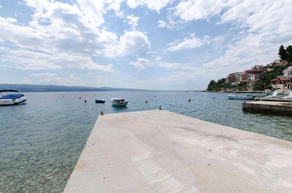 APARTMANI SANJA Omis Split sunt familii, într-o locație liniștită. Acces excelent la mare de cuplu, scări. Proprietarii sunt foarte plătiți și ospitalieri, cu vedere la mare de la majoritatea apartamentelor, gratar, terase mari, duș în aer liber. Foarte super! Recomand 100% Iva și Peter