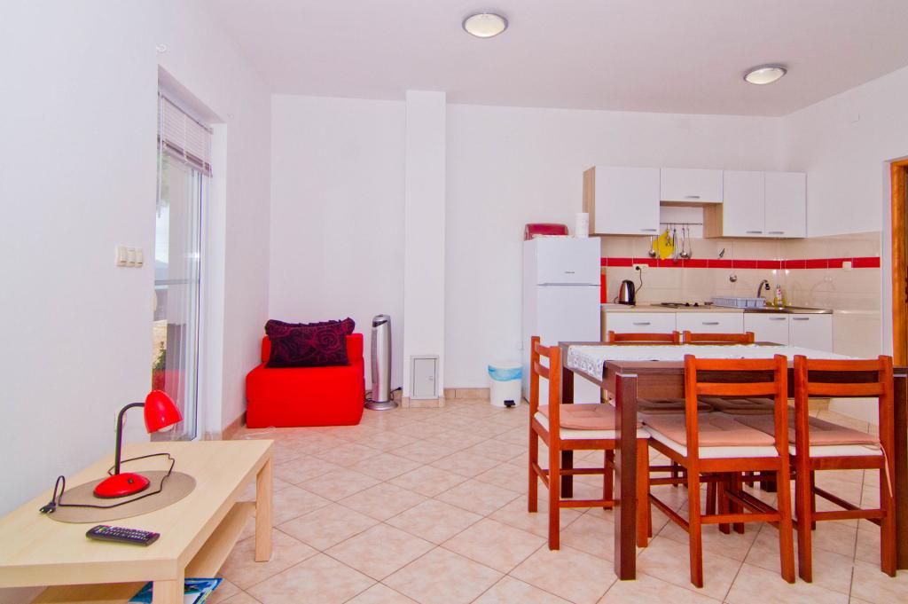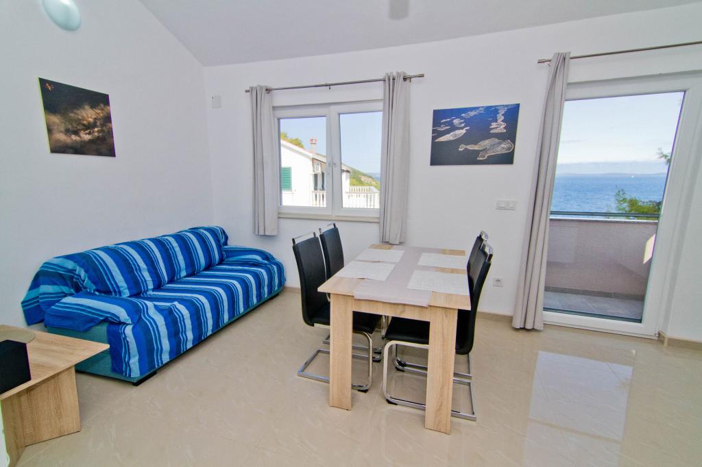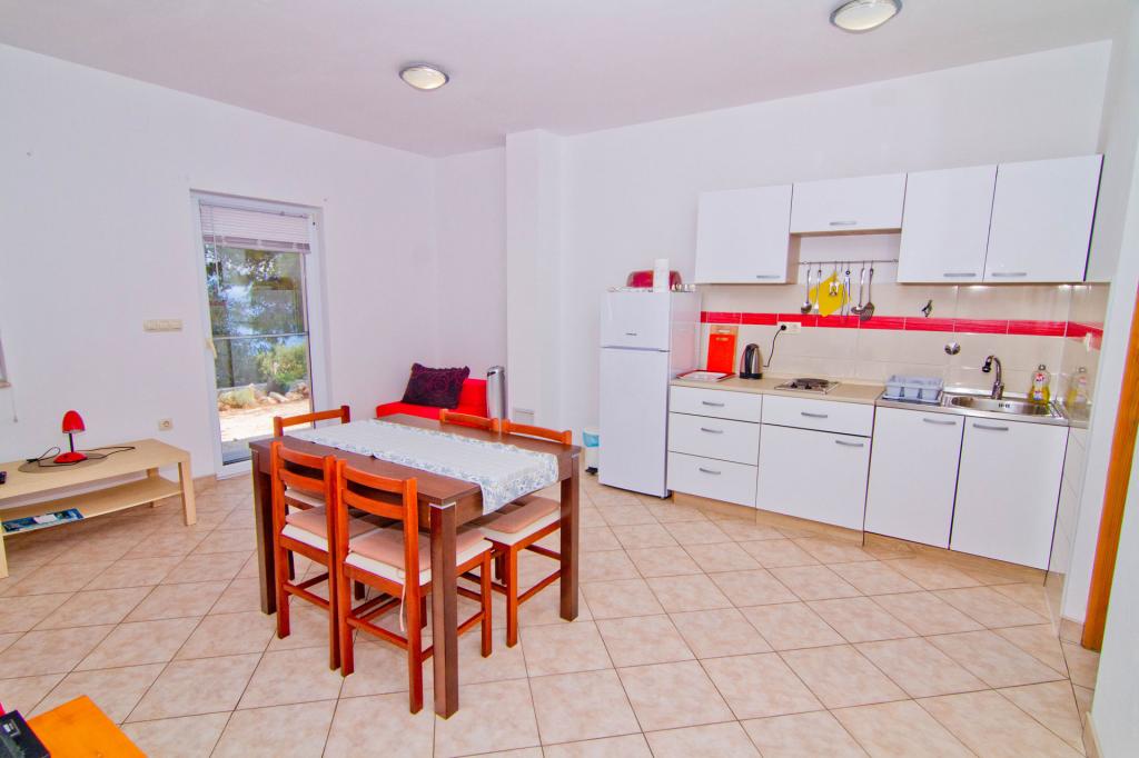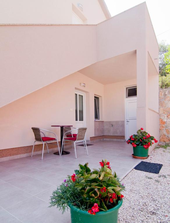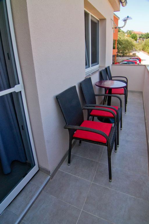 Apartamente situate într-o clădire nouă pe o stradă liniștită, cu o vedere frumoasă la mare, insule și Velebit. Fiecare apartament are o intrare separată. Apartamentele sunt complet utilate pentru o vacanta placuta de vara si au un loc de parcare in curte. Sunt echipate cu un televizor și o rețea wireless (Wi-Fi). Lenjeria de pat și prosoapele de baie sunt incluse în prețul de închiriere. Utilizare garantata a gratarului din curte. Apartamentul 4, aer conditionat, suprafata 45 m2, situat la primul etaj, are un dormitor dublu si un dormitor pentru copii cu doua paturi fiecare. Balconul este de 6 m2 iar terasa de 9 m2. Bucătăria conectată la sufragerie este dotată cu ustensile de bucătărie de bază, ustensile de gătit și de servire. Apartament 2+2, aer conditionat, suprafata 45 m2, este situat la parter si are un dormitor dublu si posibilitatea unui pat dublu in living. Terasa de 9 m2. Bucătăria conectată la sufragerie este dotată cu ustensile de bucătărie de bază, ustensile de gătit și de servire. Animalele de companie nu se acceptă