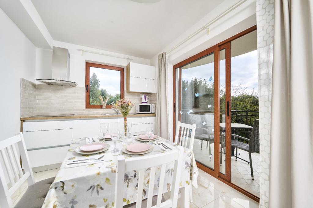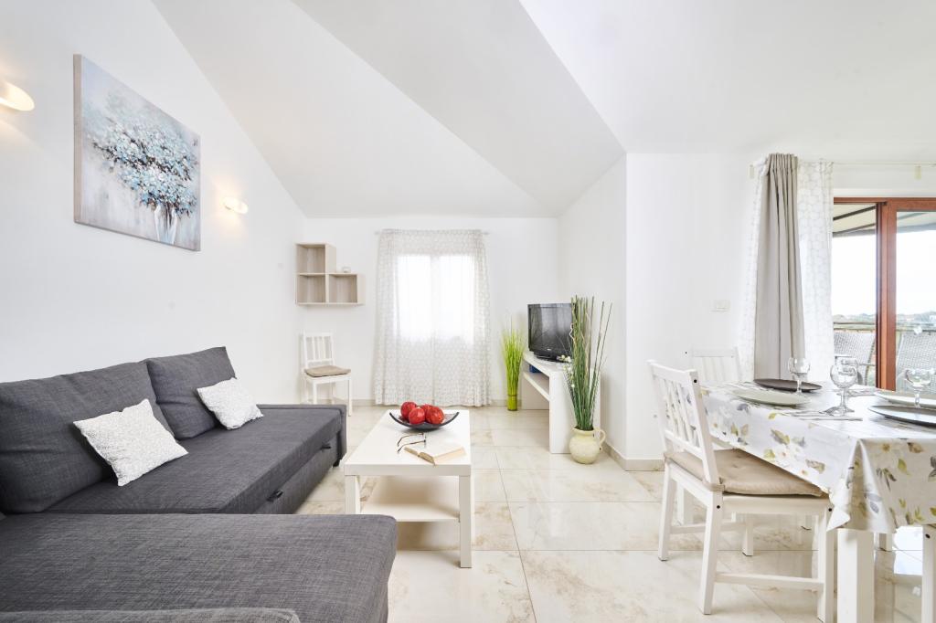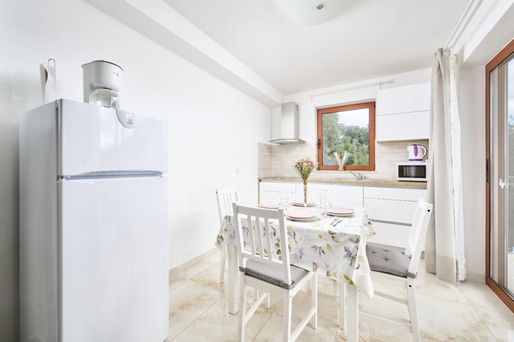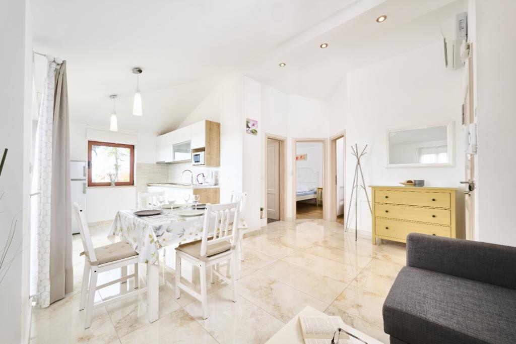 Apartament cu două dormitoare, modern și utilat. O cameră cu pat dublu, cealaltă cu pat supraetajat. Living deschis și aerisit, bucătărie cu mașină de spălat vase, baie cu mașină de spălat rufe. Terasă, aer condiționat, wifi, TV prin satelit. Piscină, parcare privată, grătar acoperit. Distanța de la restaurant 300 de metri, distanța de la plajă 1300 de metri