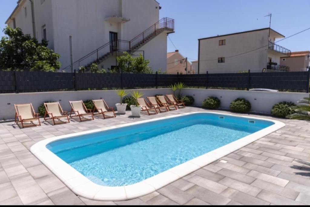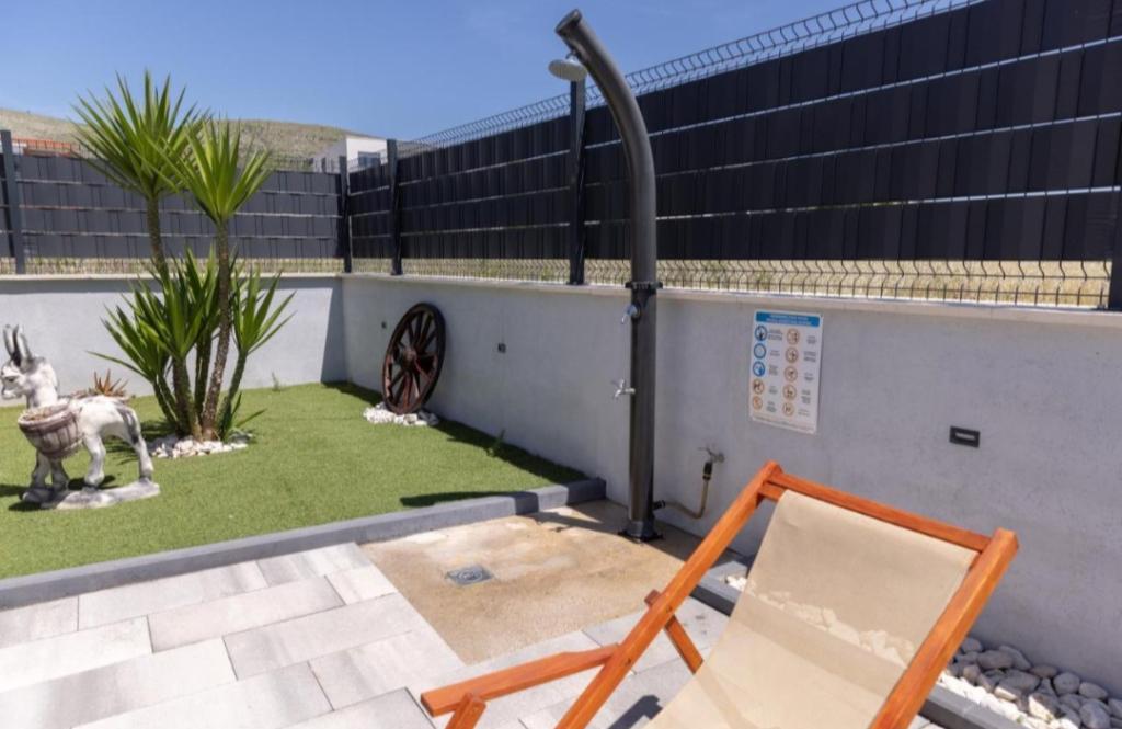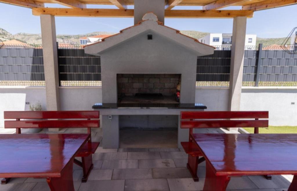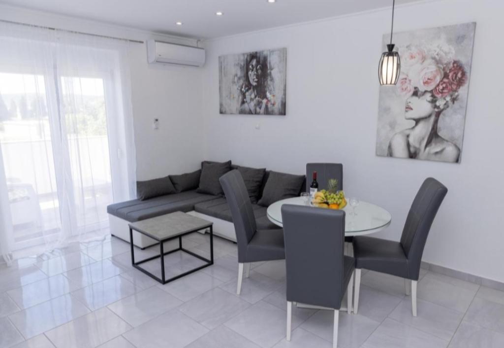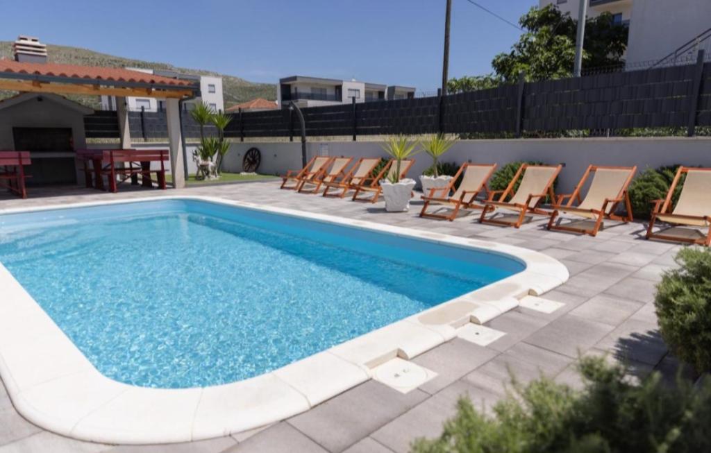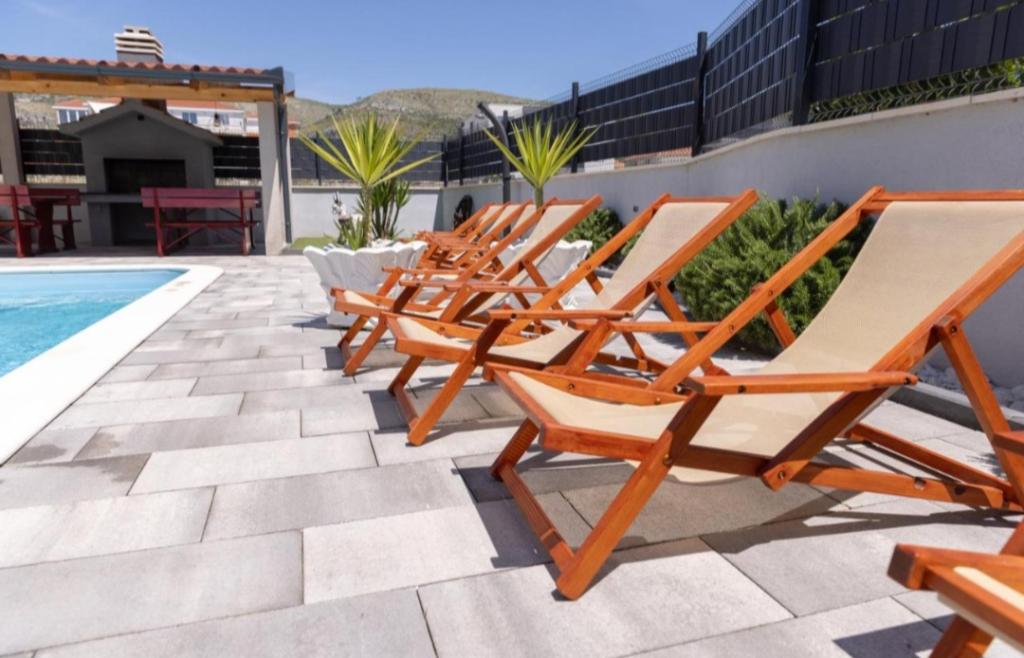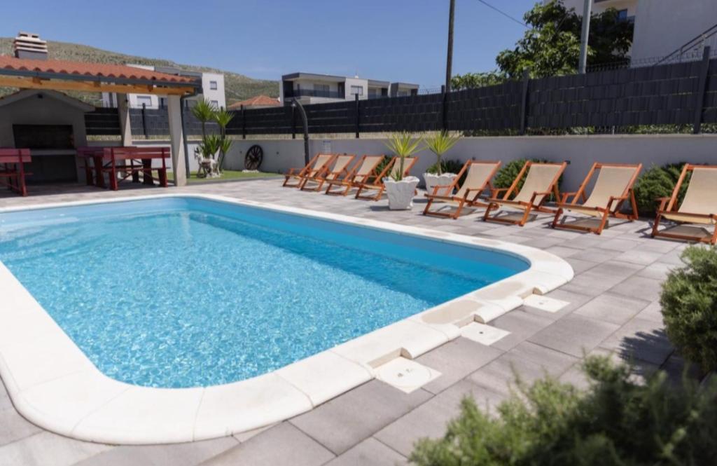 Vila mobilata nou in Seget Donji. Contine 2 apartamente de 65 m2 fiecare. Fiecare apartament are o baie, doua dormitoare cu paturi duble. Fiecare apartament are un living spatios. Vila dispune de o gradina de 168 de metri patrati, o piscina de 30 de metri patrati, un gratar exterior, sezlonguri pentru odihna, portiere de polo de foc pentru piscina. Ambele apartamente au vedere la piscină și la mare. Marina Baotić este la 100 de metri. Magazinul Tommy este la 50 de metri, în interiorul căruia există un magazin care vinde pâine proaspătă, produse de patiserie și carne proaspătă. Restaurantul Barba este la 50 de metri, precum și Caffe Bar and Pharmacy. Vila este situată la granița dintre Trogir și Seget Donjeg.