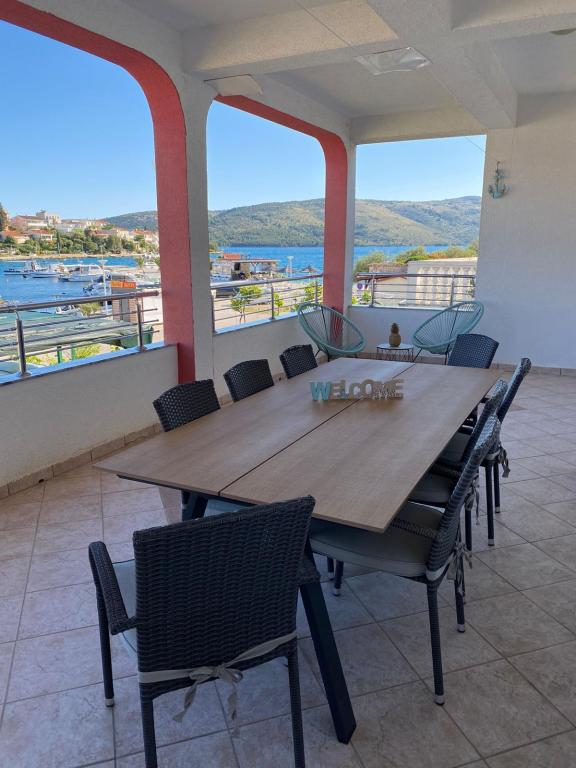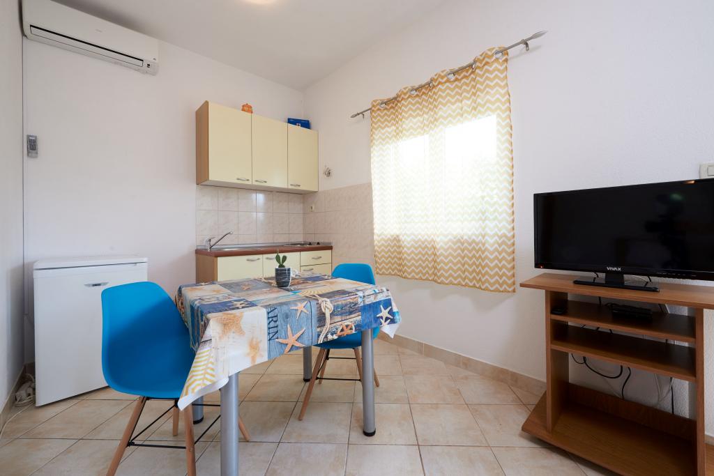 Apartamentele complet mobilate în centrul unui mic sat Dalmațian, Seget Vranjice, la doar 30 de metri de plajă și la doar 5 km de Trogir (orașul protejat UNESCO) sunt o alegere ideală pentru familiile cu copii. Apartamentele de studio sunt la parter, A8 și A4 (a) sunt la primul etaj, în timp ce A4 (b) se află la etajul doi. La doar 5 minute de mers pe jos există magazine și mai multe restaurante unde vă puteți bucura de cele mai bune specialități dalmate. Facilitățile sportive pentru diverse activități sunt, de asemenea, în apropiere, la doar 10 minute de mers pe jos. Dacă doriți să vizitați Trogir, Split sau oricare dintre insulele din apropiere, oprirea bărcii este la doar câteva minute. În fața casei se află o grădină unde copiii se pot juca în siguranță. În curtea din spatele casei este la dispoziție un grătar. Parcarea este, de asemenea, oferită pentru toți oaspeții apartamentului.