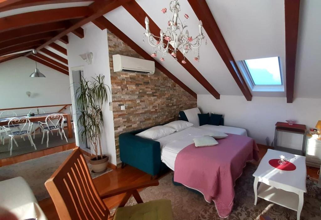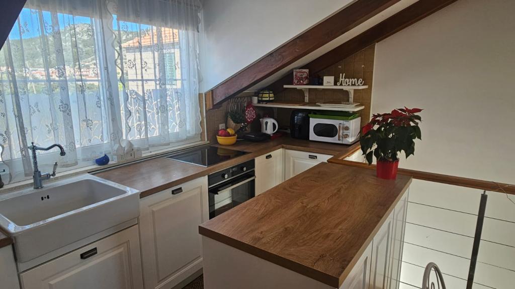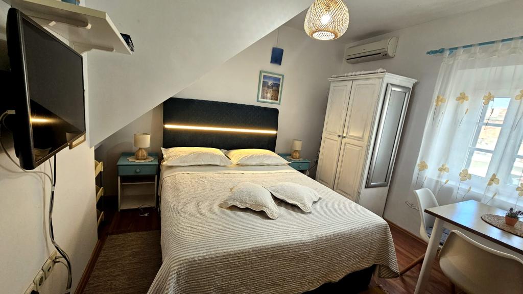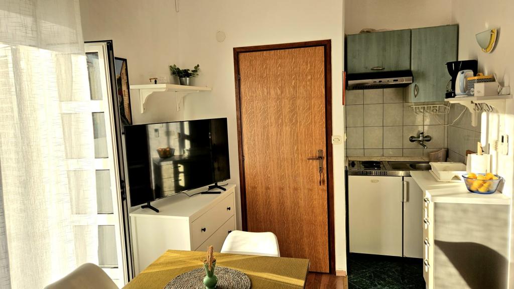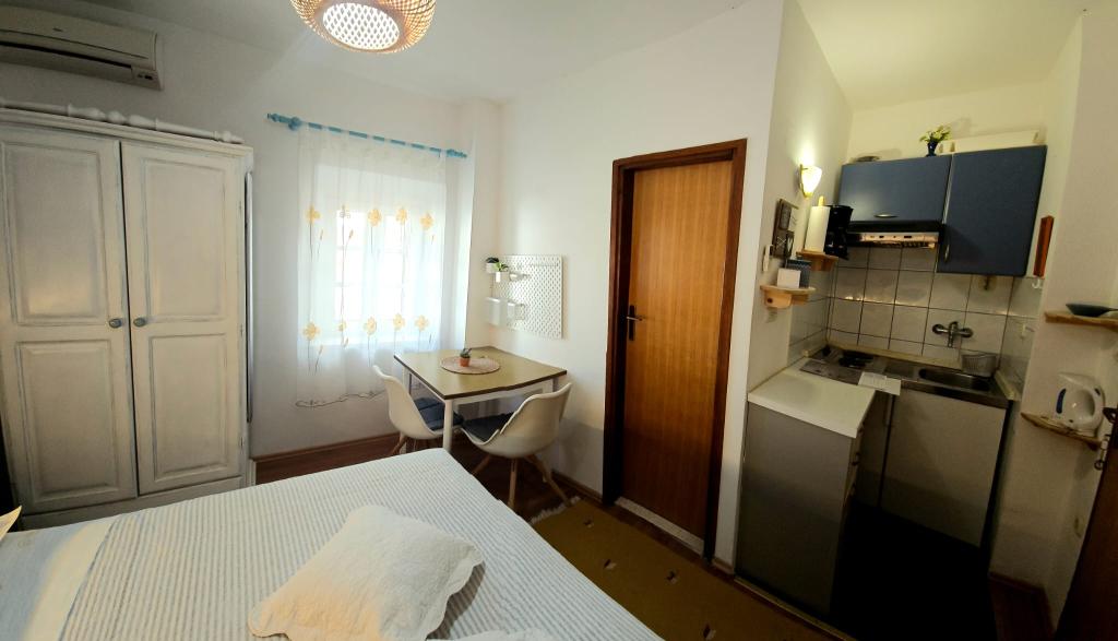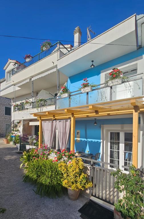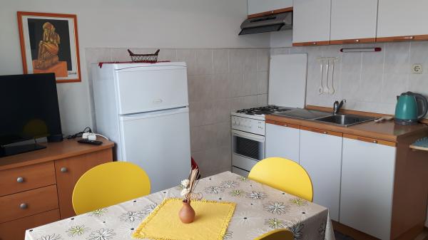 Apartamente "Viktorija" se află în satul mic Seget Vranjica, la 6 km de Trogir - UNESCO protejat oraș, la 9 km de aeroportul Split, 30 km de Split. Apartamente "Viktorija" Studiia includ 2 apartamente si 1 apartament (4 1): Studio pentru 2 persoane - 22 m2 balcon 5 m2, situat la primul etaj, bucătărie, living si dormitor sunt situate într-o cameră, WC cu cabină de duș, TV prin satelit, aer condiționat, Wi-Fi gratuit. Studio (2 1) - 25 m2 și balcon 5 m2, situat la primul etaj, bucatarie, living si dormitor (canapea și pat dublu) se află într-o singură cameră, baie cu cabină de duș, TV prin satelit, aer condiționat, Wi-Fi Apartament (4 1) - 50 m2 balcon de 10 m2, situat la primul etaj, bucătărie, sufragerie, 2 dormitoare, baie cu cabină de duș, TV prin satelit, aer Wi-Fi gratuit Toate apartamentele sunt complet echipate cu ustensile de bucătărie, tacâmuri, pături și prosoape. Final de curatenie inclus in pret.