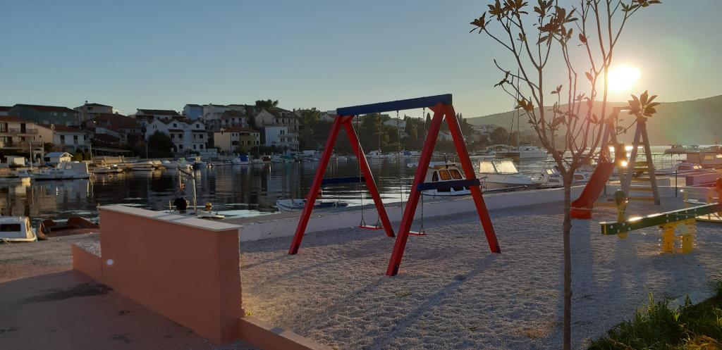 Taxa de rezidenta este inclusa in pret.Posibilitatea de a gratar - gratuit, și capacitatea de a utiliza conexiunea pentru o taxă. La doar 100 de metri distanță, pe coasta au o linie barcă de Trogir, precum și opțiunea de a cumpăra excursii la numeroase destincacije turistic și pica, și să cumpere bilete pentru picnic de pește; schimb valutar; Mai multe restaurante Aproape apartmana- doar 1 km distanță este un sat turistic Belvedere tabără și apartamente cu multe facilități sale pentru sport și agrement: tenis, tenis de masa, sporturi nautice: Vehicule de remorcare: parasuta, banana, tuburi, etc .; ATM, lumea gastronomică bogată
