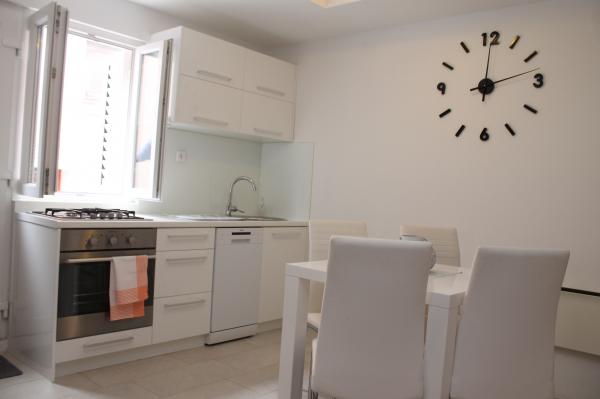 Am stat în apartament în iulie. Vorbeste cu doamna Ines perfecta. Am scris SMS, ne-a descris drumul și ne-a salutat frumos. Apartament exact așa cum este descris, deși mic, dar frumos și curat !! Dormitorul de la etaj unde dorm doi adulți și la parter, în sufragerie, cu canapea extensibilă, în care două persoane dorm confortabil. Apartamentul se află într-o stradă liniștită, dar la doar câțiva metri de centru și de port. Frumoasa plajă de nisip potrivită copiilor mici este puțin mai departe decât menționat, la aproximativ 10 minute de mers pe jos. (Din păcate, în sezon, capul în cap și, prin urmare, mai degrabă împrumutăm șezlonguri pentru a avea spațiu.