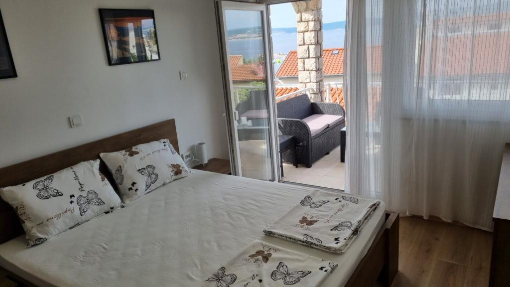 Închiriez un apartament cu două dormitoare, o terasă mare și vedere la mare. Apartamentul este situat pe o stradă liniștită, la 200 de metri de mare, plajă și centrul orașului Selce.