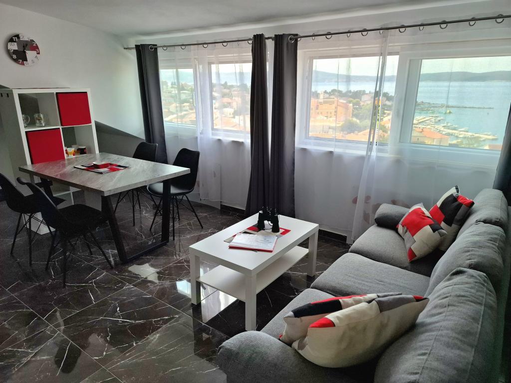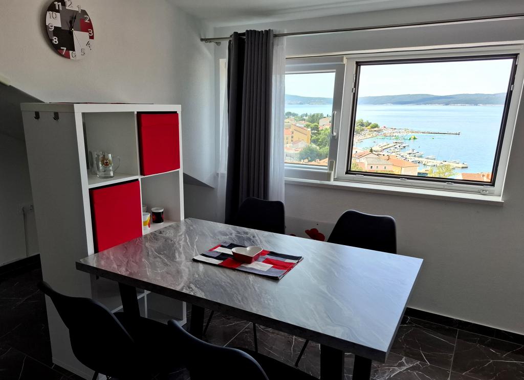Apartamentul recent renovat, cu vedere frumoasă la mare, este situat în centrul orașului Selc, un oraș pitoresc de lângă Crikvenica. Centrul orașului, piața, cafenelele, restaurantele și plajele sunt la doar câteva minute de mers pe jos. Apartamentul se afla la aproximativ o suta de metri de centrul orasului si de plaja. Pretul apartamentului include parcare in curte, aer conditionat si Wi-Fi.