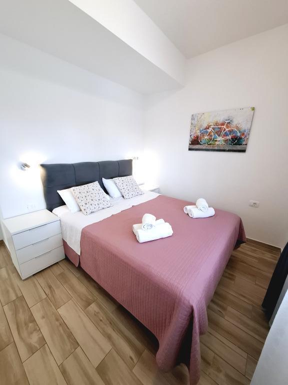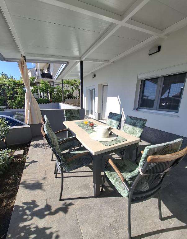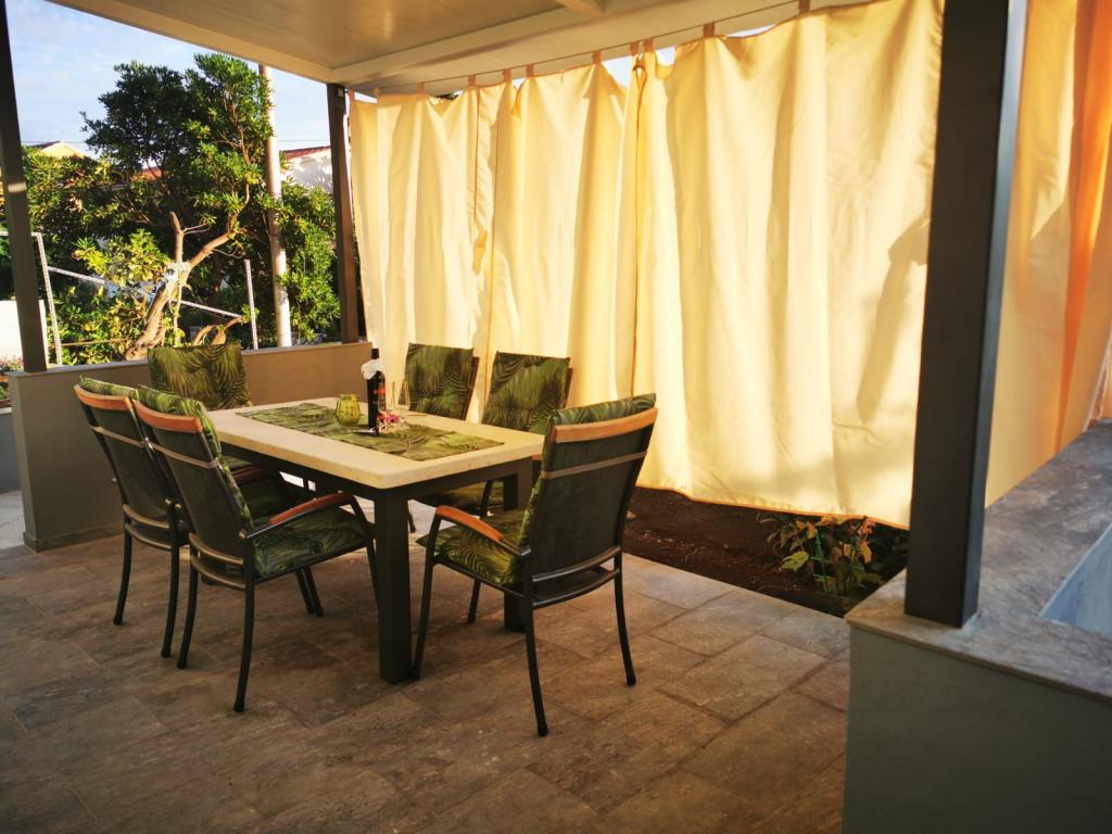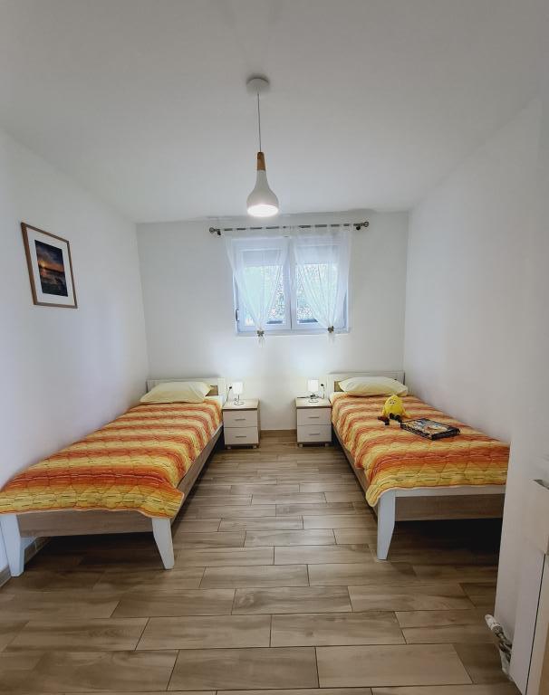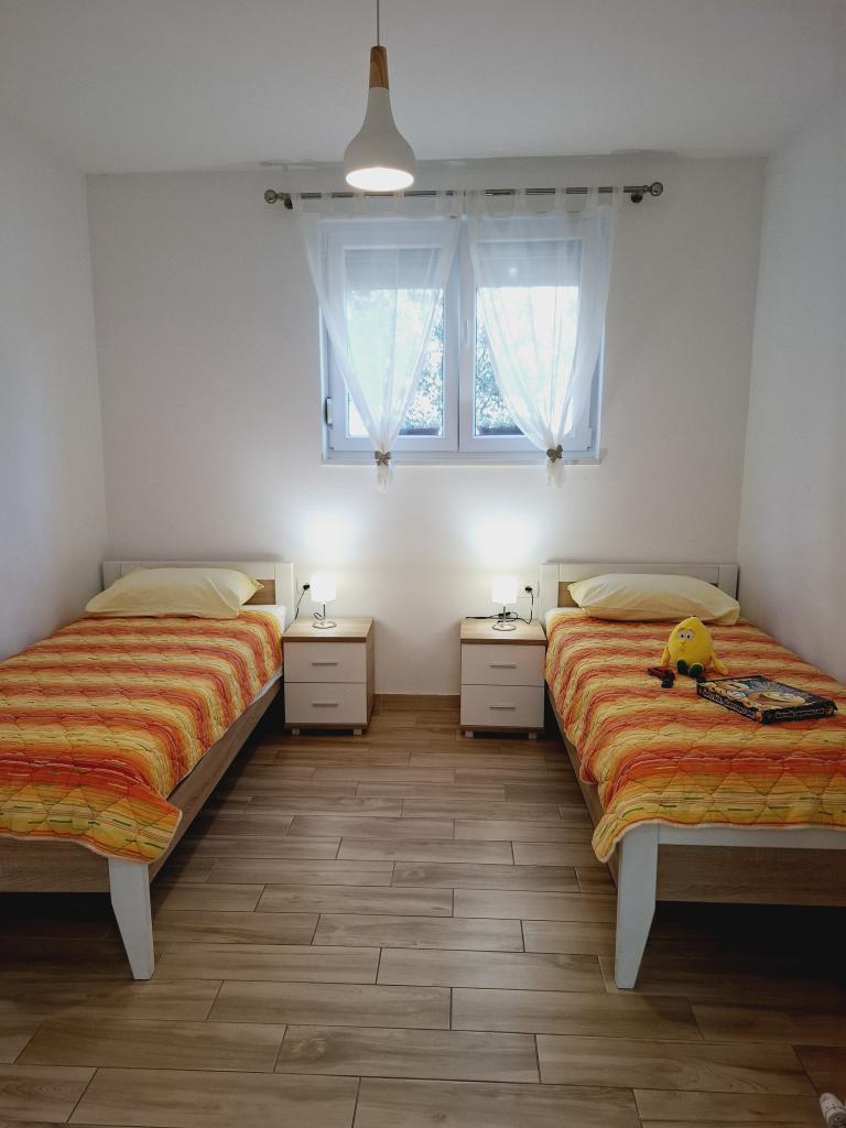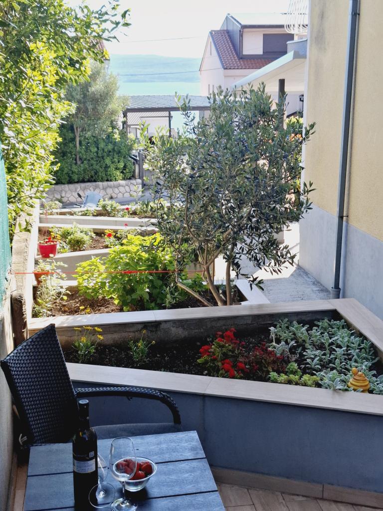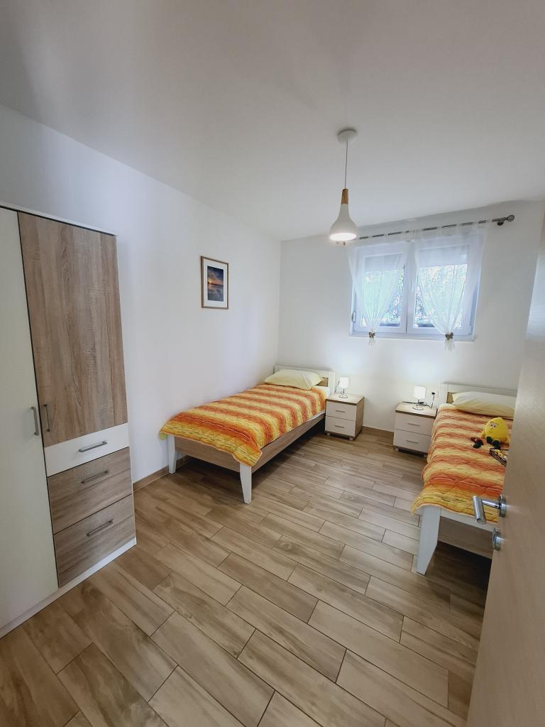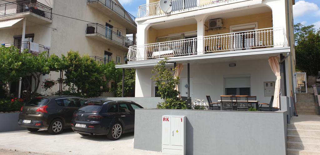 Apartamentul 1 este situat la parterul unei case de familie cu o terasă privată mare și vedere parțială la mare. Complet utilat, aer condiționat, internet, parcare. Este situat la aproximativ 300 m de mare, plajă și centrul orașului. Este format din două dormitoare duble (unul cu pat dublu, unul cu două paturi de o persoană), un living, o bucătărie utilată cu sufragerie (mașină de spălat vase), o baie (mașină de spălat rufe) și o toaletă separată. Parcarea pentru 1 vehicul este prevăzută în curtea casei. Apartamentul studio este situat la parterul (parter superior) al casei de familie. Dispune de o bucătărie, un pat dublu 160x200 cm, o baie, aer condiționat și o mică terasă în fața studioului. Grătarul este utilizat în comun. Apartamentul Lea este situat la etajul 2. Are 2 dormitoare, o bucătărie utilată, o baie (mașină de spălat rufe), aer condiționat, o terasă mare cu vedere la mare. Parcarea pentru 1 mașină este prevăzută în curtea casei.