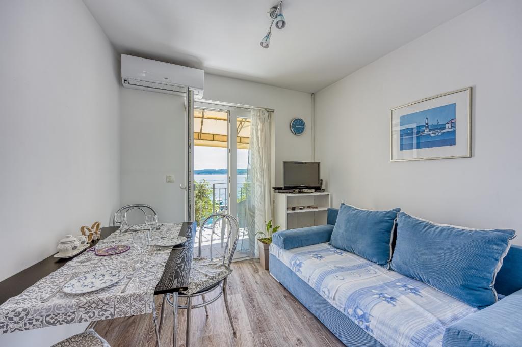Apartamentul este situat la parter, vedere la mare, complet echipată, situat lângă mare și în centru. Aproape de toate facilitățile. Apartamentul are o bucătărie, living cu canapea, dormitor, baie, în fața apartamentului viu este o mică terasă cu vedere la mare.