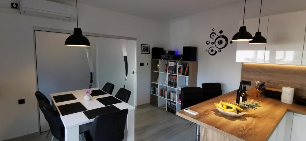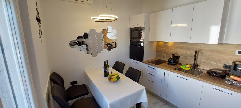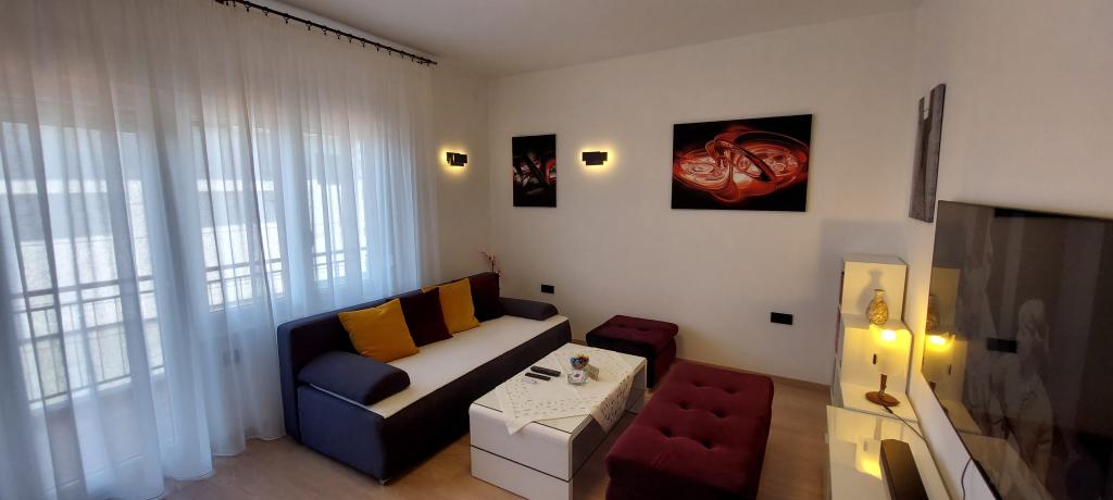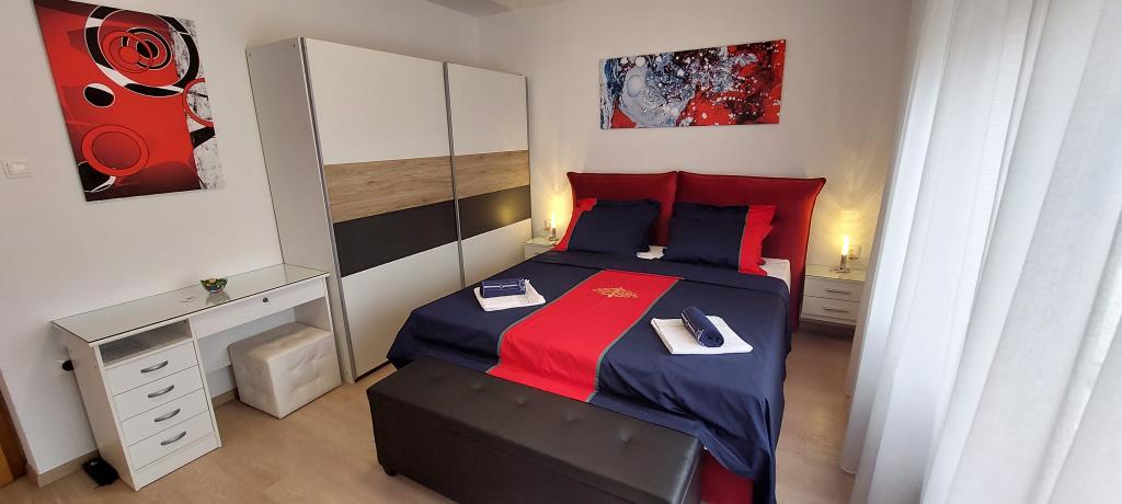 Două apartamente complet și modern echipate lângă plajă situate la mezanin (apartament Perunika) și primul etaj (apartament Bougenvilija). Ambele apartamente au doua balcoane si parcare pazita in fata casei. Un dormitor cu un pat dublu, o cameră de zi cu o canapea extensibilă și o bucătărie cu zonă de luat masa sunt dotate cu aer condiționat. Internetul este gratuit. Imobilul este situat la 5 minute de mers pe jos de centru si la mai putin de 2 minute (100 de metri) de plaja.