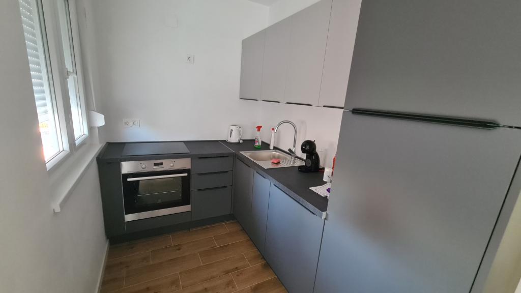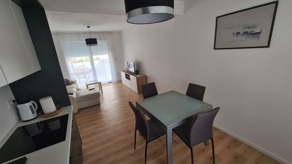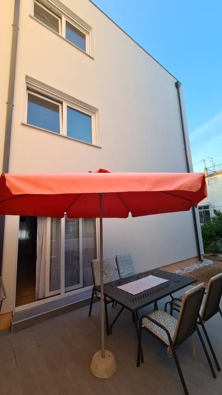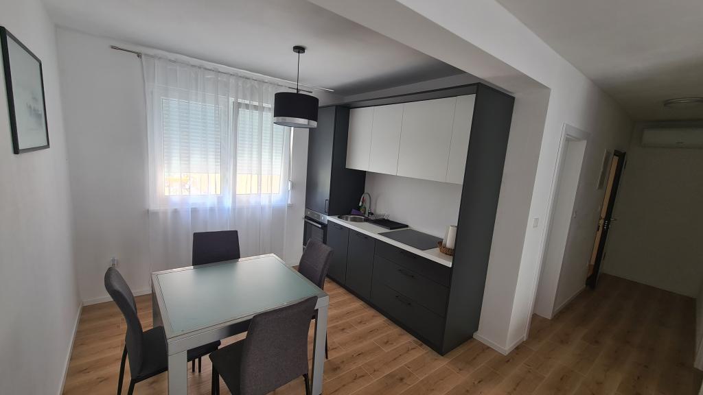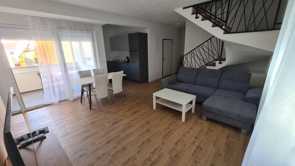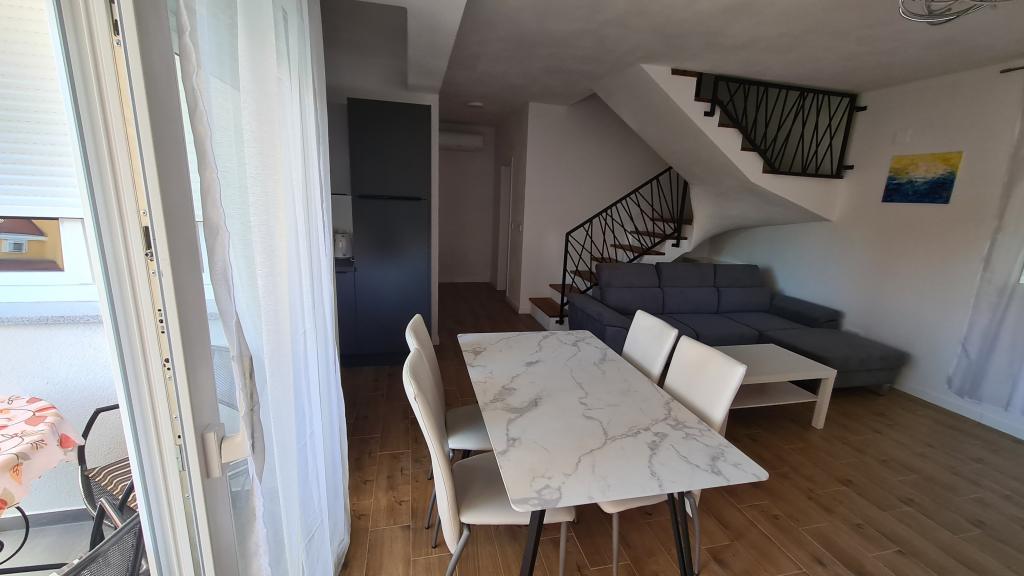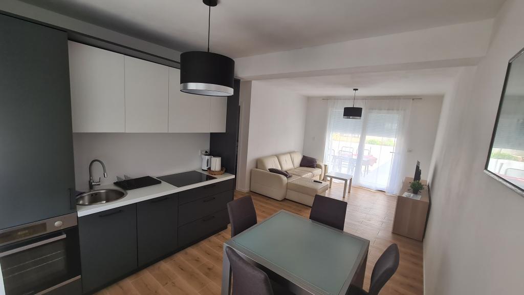 AP-Parter: Apartament nou, bine mobilat, ideal pentru o vacanta grozava. Clădirea rezidențială este formată dintr-o intrare, o baie, o bucătărie, o terasă privată și o sufragerie, un living cu o canapea extensibilă și un dormitor cu pat dublu. Oaspeții au la dispoziție propria lor terasă. Etajul AP cu două etaje: Apartament nou, bine mobilat, ideal pentru o vacanță grozavă. Cladirea rezidentiala este pe doua etaje. Zona de zi la etaj (intrare, baie, bucătărie, loggia de luat masa și living cu canapea extensibilă) și zonă de dormit la etajul superior (două dormitoare cu paturi duble). Este situat intr-o locatie exceptionala, la doua minute de piata centrala, la un minut de magazine si brutarii si diverse restaurante, si la trei minute de plaja. Parcare și Wi-Fi gratuit.