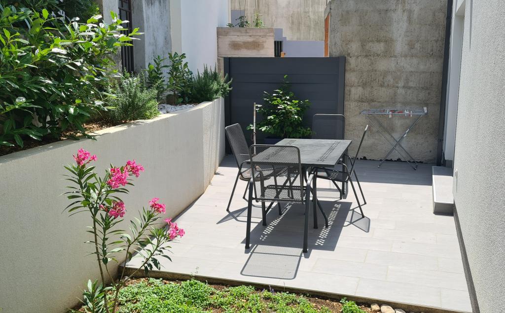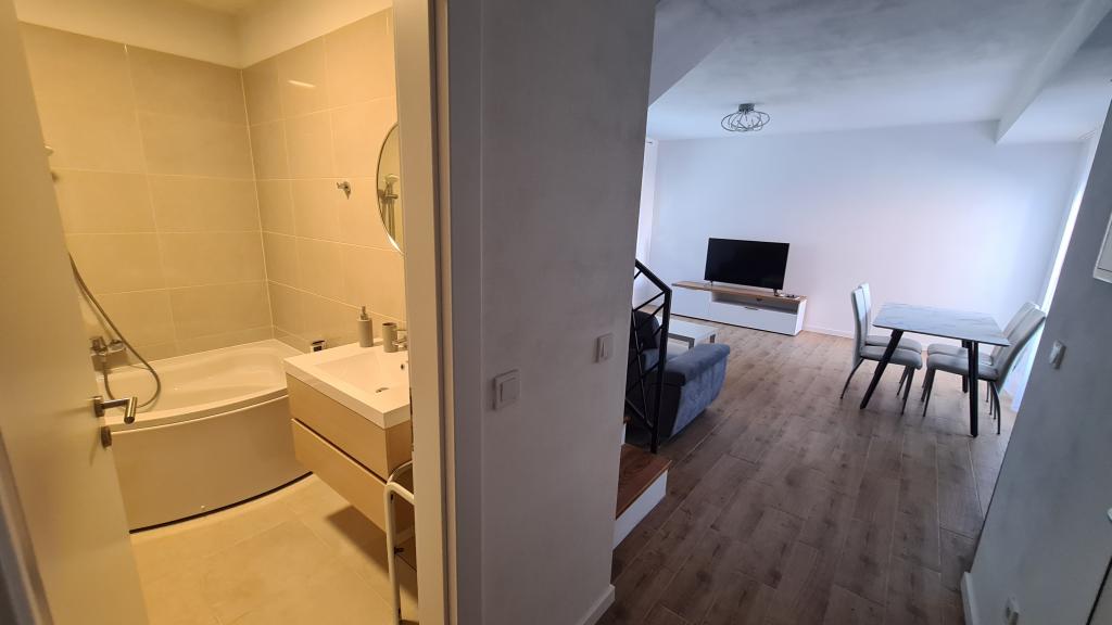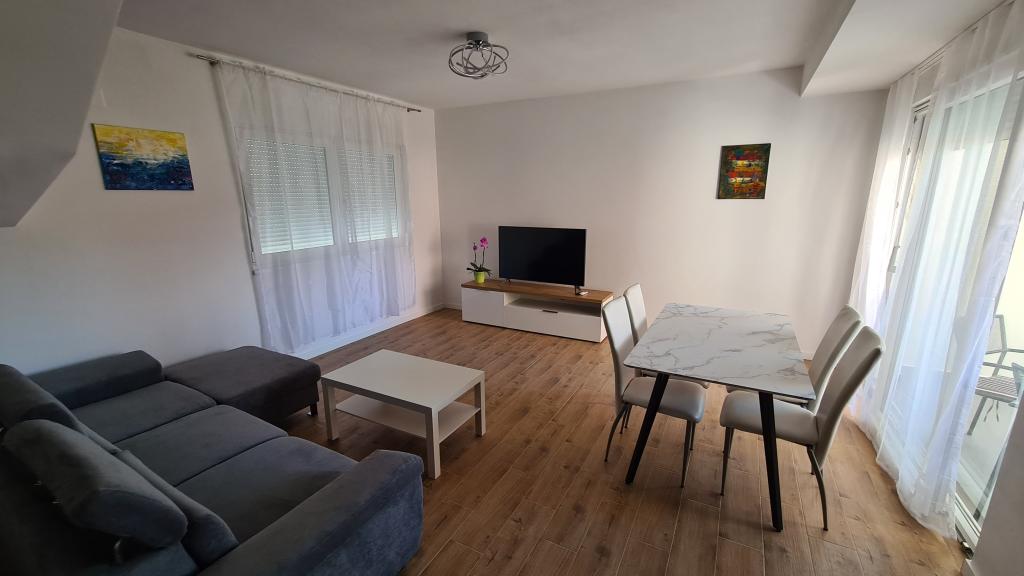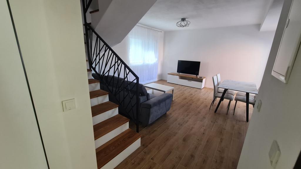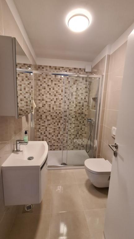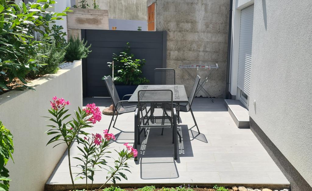 AP-Parter: Apartament nou, bine mobilat, ideal pentru o vacanta grozava. Clădirea rezidențială este formată dintr-o intrare, o baie, o bucătărie, o terasă privată și o sufragerie, un living cu o canapea extensibilă și un dormitor cu pat dublu. Oaspeții au la dispoziție propria lor terasă. Etajul AP cu două etaje: Apartament nou, bine mobilat, ideal pentru o vacanță grozavă. Cladirea rezidentiala este pe doua etaje. Zona de zi la etaj (intrare, baie, bucătărie, loggia de luat masa și living cu canapea extensibilă) și zonă de dormit la etajul superior (două dormitoare cu paturi duble). Este situat intr-o locatie exceptionala, la doua minute de piata centrala, la un minut de magazine si brutarii si diverse restaurante, si la trei minute de plaja. Parcare și Wi-Fi gratuit.