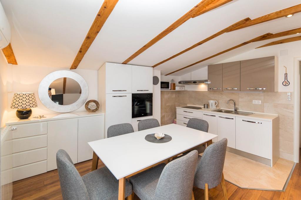 Citește mai mult Unități de cazareOra sosirii: 14:00. Ora plecării: 10:00. Plată în avans pentru rezervare: 100 de euro. Plata se face la sosirea la apartament. Parcare gratuită. Taxa de turist nu este inclusă în preț. Prețul curățeniei finale a apartamentului este: A2+1 40 de euro, A4+1 50 de euro, A6+1 60 de euro.