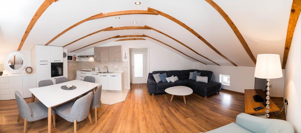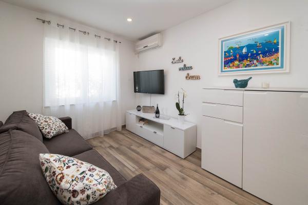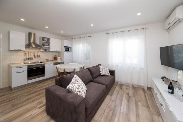 Am avut o vacanță minunată aici în iulie 2023. Proprietarii sunt foarte drăguți și primitori. Proprietarul ne-a arătat apartamentul nostru și ne-a explicat totul. Proprietarul ne-a permis să ne parcăm mașina în fața apartamentului deja dimineața. Comunicare excelentă cu proprietarii. Toata casa este frumoasa, amenajata, intretinuta, curtea plina de flori, peste tot foarte curata. Aveam intimitate deplină, pace. Apartamentul este nou-nouț, modern și frumos mobilat, foarte curat și suficient de spațios. Două aparate de aer condiționat, mașina de spălat și mașina de spălat vase au fost excelente. Am folosit și un fier de călcat și o trusă de prim ajutor. Bucataria este bine utilata, nu a lipsit nimic. Cinci oameni s-au simțit grozav acolo. Noi am folosit balconul cu vedere la Selce, terasa este grozavă pentru uscarea lucrurilor umede de pe plajă. Apartamentul are chiar si o camera suplimentara pentru gonflabile, echipament de inot, scutere. Apartamentul este grozav. Apreciem apropierea minunată de centru, de magazin, de piața de fructe și legume, toate în 2 minute de mers pe jos. Plaja Poli Mora la 5 minute de mers pe jos. Doamna de la curățenie este foarte drăguță cu noi și copii, călduroasă. Avem deja o rezervare pentru vara anului 2024. Așteptăm și recomandăm această minunată cazare.