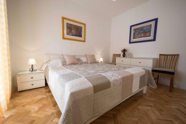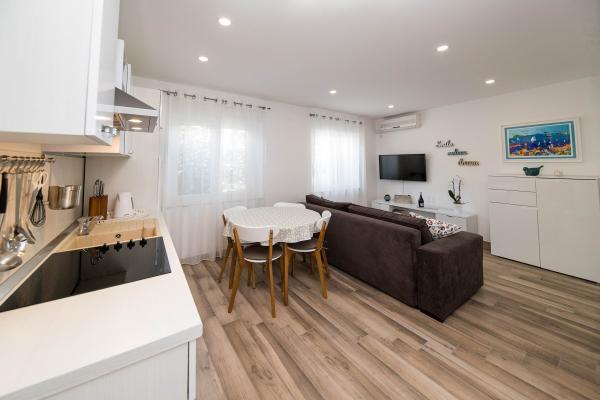 Apartamente luxos echipate (4 stele) sunt situate în centrul orașului Selce. Acestea sunt situate la doar câteva minute (150 m) de mers pe jos de plajă, magazine, restaurante, farmacie, clinică și autogară. Apartamentele sunt dotate cu aer condiționat, TV prin satelit, mașină de spălat vase, mașină de spălat rufe, iar accesul gratuit la internet este disponibil pentru fiecare oaspete. APARTAMENTE: 6 1 = 3 dormitoare, 2 băi, living, bucătărie, balcon (aprox. 80 m2) 4 1 = 2 dormitoare, living, bucătărie, balcon și terasă, 1 baie (aprox. 70 m2) 2 1 = 1 dormitor, living cu bucătărie, 1 baie (aprox. 40 m2)