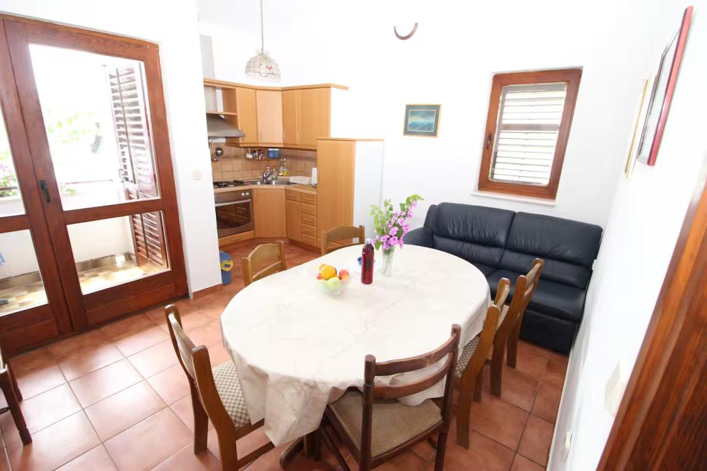 Apartament Stipe este situat la întregul etaj superior al casei care este situat direct pe mare. Apartamentul are 130 m2 si este compus dintr-o bucatarie utilata cu o sufragerie cu un mic balcon si vedere la mare, in total 4 dormitoare, dintre care doua au acces la balcon si vedere la mare, iar celelalte doua dormitoare fara balcon si fara vedere la mare, 2 bai cu toaleta, dintre care unul are cada si celalalt dus. Oaspeții au la dispoziție și o grădină de aproximativ 400 m2, pe care o folosesc împreună cu proprietarul, un grătar acoperit deschis cu masă și bănci și șezlonguri. Apartamentul este ideal pentru familiile cu copii care se pot juca fara griji in gradina mare imprejmuita de la care au acces direct la plaja, sau pentru prietenii drumetii deoarece casa este situata la doar 2 km de Parcul National Paklenica. La doar 40 km de apartamentele Stipe se află orașul Zadar, care este cunoscut pentru numeroasele sale atracții și muzee și pentru istoria de o mie de ani a orașului său vechi.