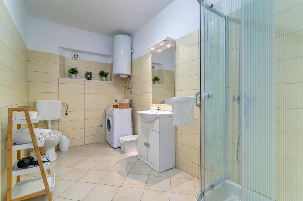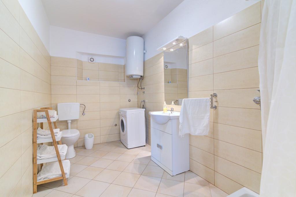 Un apartament mare, confortabil, bine dotat, cu aer condiționat, deși fără mașină de spălat vase. Este ca in descriere si poze. Proprietarul a fost foarte amabil; Am comunicat în engleză, dar puteți comunica și în limba „slavă”. Este nevoie de câteva minute pentru a ajunge la cea mai apropiată plajă prin străzi rezidențiale, traversând un drum aglomerat și 200 de scări la capăt. Cu siguranță merită pentru că este frumos! Chiar dacă e mic, de fiecare dată când am fost acolo era loc pentru noi șase (eram la Senj la începutul lunii iulie). Pe marginea plajei se afla un loc din care poti sari in apa, poti de asemenea sa traversezi apa sau sa inoti pana la o plaja asemanatoare langa ea, sau mai departe de stanci. Pe plajă există un izvor (asemănător altor locuri din zonă) care dă un efect foarte interesant. Aproape de țărm, apa proaspătă și rece se adună într-un strat subțire la suprafață, deasupra apei de mare mai calde, înainte de a se amesteca cu ea în marea ondulată. În centrul orașului Senj, există două supermarketuri mari (la 5 minute cu mașina de apartament), restaurante și saloane de înghețată. În centru sunt și două plaje parțial betonate. Puteți parca la ambele, iar pe una dintre ele există o platformă de sărituri. În apropiere sunt două terenuri unde, după plajă, am jucat meciuri internaționale de fotbal până la apus. Nu am avut timp sa vizitam muntii din jurul orasului, dar cu siguranta merita.