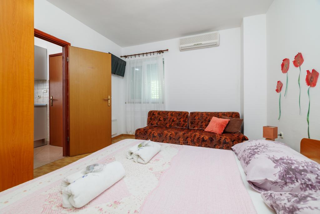 Camere confortabile, o parte a camerei este o baie, balcon, frigider. Acesta este situat într-o zonă foarte liniștită a orașului și la numai 5 minute de plajă. Acesta este cu aer condiționat, precum și locuri de parcare pentru vehiculul. Grădina are un grătar și o masă cu scaune, astfel încât să fie posibil și a lua masa. Mario și familia sa sunt foarte servicii si sunt mereu acolo pentru a răspunde la întrebări. Vă mulțumim pentru camera scurt, dar frumos. Tina și Tom