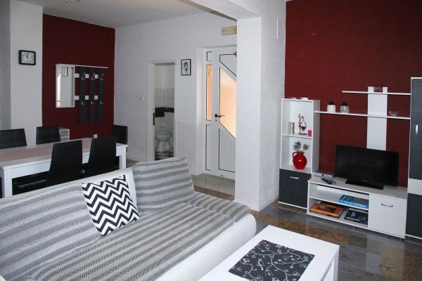 Avem placerea de a va prezenta de apartamente "Bobinac", apartamente cu aer condiționat, confortabile, situate la etajul al doilea și la parterul unei case private, construit literalmente 50 de metri de mare și la 300 de metri de centrul orașului. Bobinac Apartamentele sunt într-un loc liniștit, fără mult trafic și agitația și totuși la doar câțiva pași de necesare pentru o vacanță plăcută și relaxantă. Apartamentele Bobinac sunt un amestec de autentice relaxa, departe de zgomotul, poluarea industrială și nebunia din viața agitată de zi cu zi, fără a renunța la toate beneficiile tehnologiei moderne de astăzi. Facilitatea noastră are un total de 4 apartamente. Toate bucătăriile sunt dotate cu o chiuvetă, frigider, aragaz și toate ustensilele necesare, și va oferi o oportunitate pentru prepararea hranei la domiciliu. În plus, în funcție de apartament pe care o alegeți sau, care este gratuit, cu prosoape de duș, hârtie igienică, sampon, mașină de spălat și baie de cabinet într-o baie toate sunt, de asemenea, dușuri. Apartamentele cu aer condiționat vă și receptoare TV prin satelit, precum și furnizarea de internet wireles așteaptă. La etajul al doilea sunt trei apartamente, doua apartamente se potrivi patru persoane (