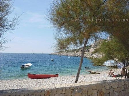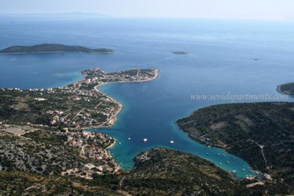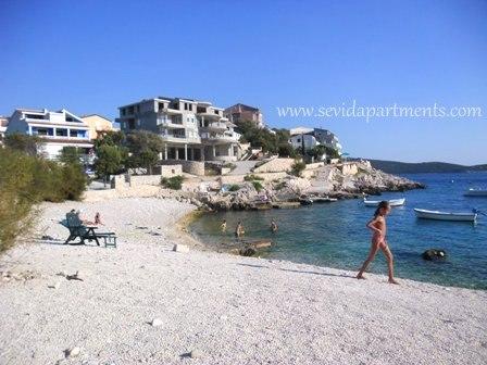 Casă cu două apartamente de pe malul mării, 10 m de plaja de nisip. Apartament cu doua camere la parter (4 +1) și un apartament cu un dormitor (2 +2), la primul etaj, cu o vedere minunată la mare, plajă și insule. Oferă o vacanță liniștită în Sevid - Trogir Riviera, bucurându-se de frumusețea golfuri insorite si apele limpezi precum cristalul, o parte aproape ascuns de pe coasta croată.