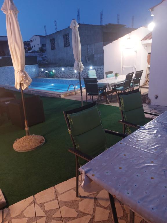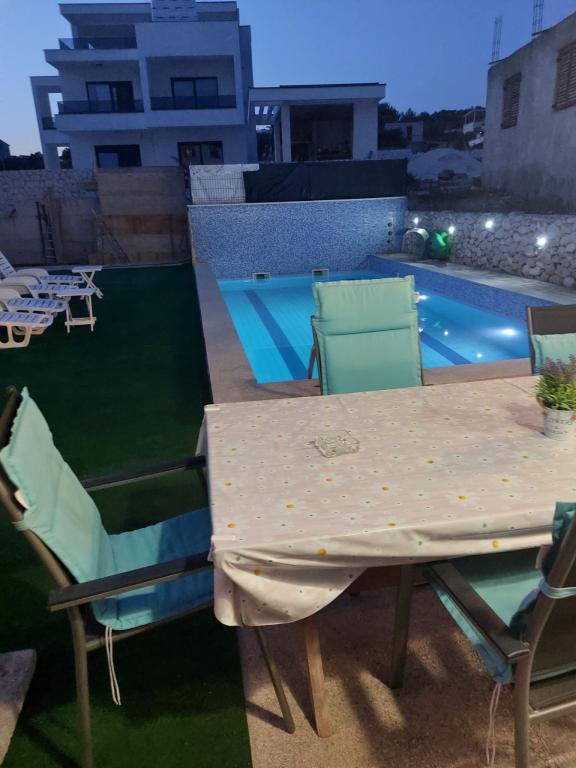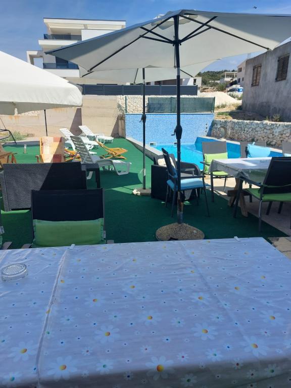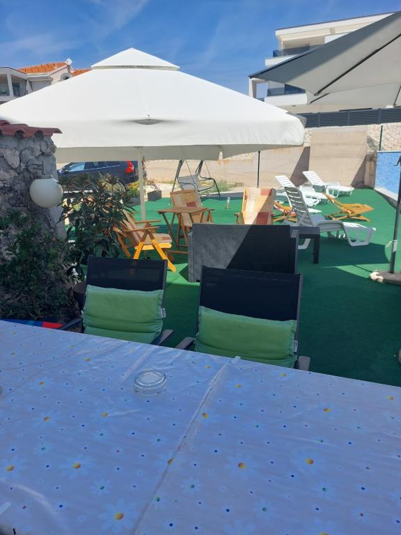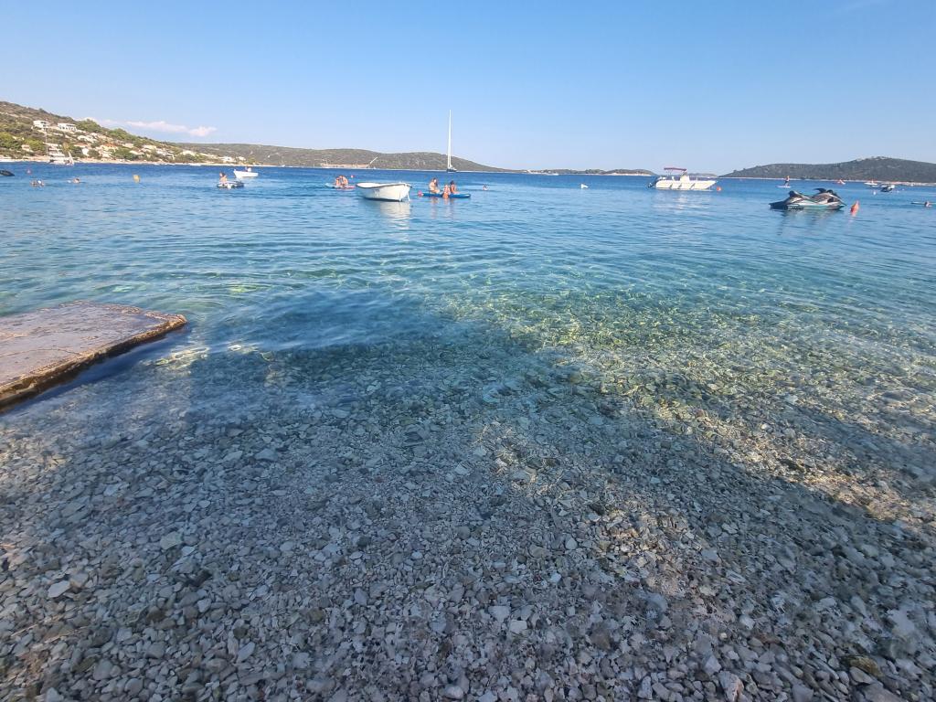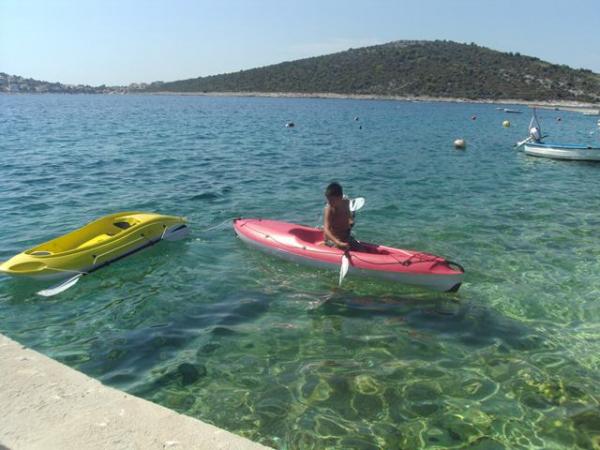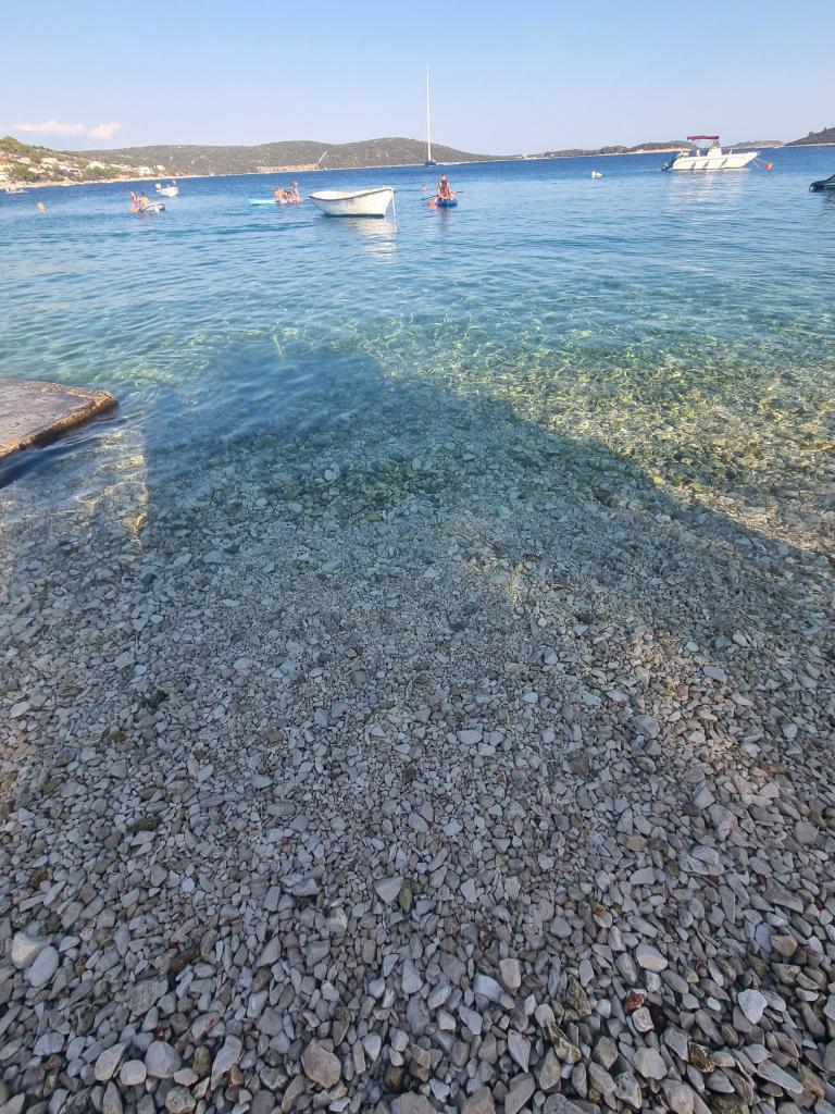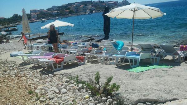 Zona liniștită și liniștită. Șezlonguri, umbrele, caiace disponibile pe plajă și toate acestea pentru preț. În grădină există o piscină și o zonă de grătar. Loc de parcare. Camerele de 4 stele spațioase, cu un balcon mare (am petrecut prima săptămână acolo), A2 + 2 (a doua săptămână de ședere) un pic mai mic, camere curate. Proprietarii frumos, prietenos, de ajutor. Familie frumoasă 2 + 2 (copii cu vârste între 7 și 11 ani). La magazin și la bar 2 minute. (doar magazin și bar în sat, la plajă maxim 1 minut.) Apa în acest loc foarte curată. Recomand apartamentul Dinko tuturor.