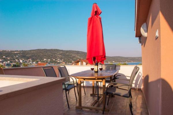 Pentru o vacanta perfecta cu familia sau cu prietenii, la plaja, Martin, apartamente, selectați situat într-un loc liniștit în apropierea Sevid Trogir și Primosten. , Cu excepția într-un interior elegant mobilate dotate cu facilități moderne, de stres-free atmosfera este oferit pentru tine pe plajă și în grădină cu un grătar. Oaspeții pot avea, de asemenea, o terasă spațioasă, cu o zonă de relaxare. Apartamentele sunt situate doua linie la mare, și la doar un minut de mers pe jos 3-4, din apropiere, magazine, cafenele și restaurante.