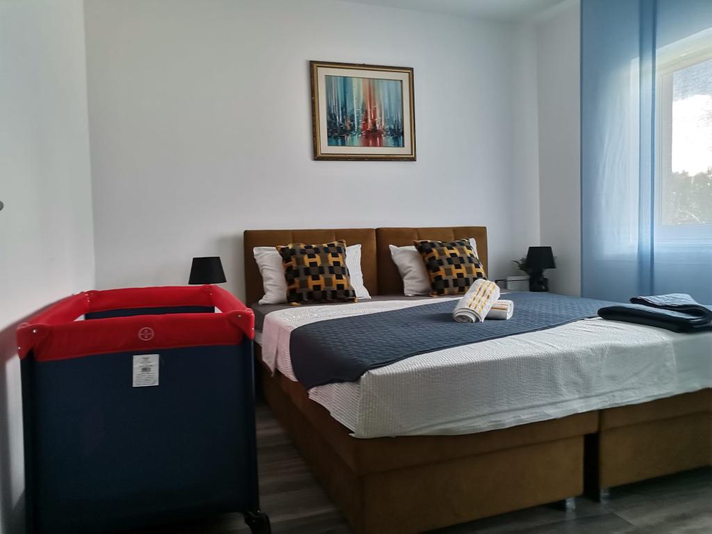 Vacanta cu familia si prietenii fara stres si zgomot intr-un mediu linistit. Distanțe 1,8 km de frumoasa plajă "Rezalište" cu parcare gratuită și conținut bogat, 4 km de centrul orașului, 10 km de NP Krka și tot ce aveți nevoie, magazine, restaurante, fast-food, farmacie, teren de fotbal și baschet cu exerciții fizice echipamente, toate in raza de 0,4 km.Pretul include parcare pana la 3 autovehicule in curte, si taxa turistica.