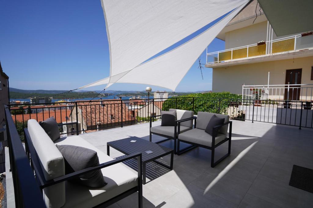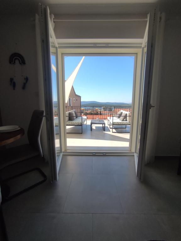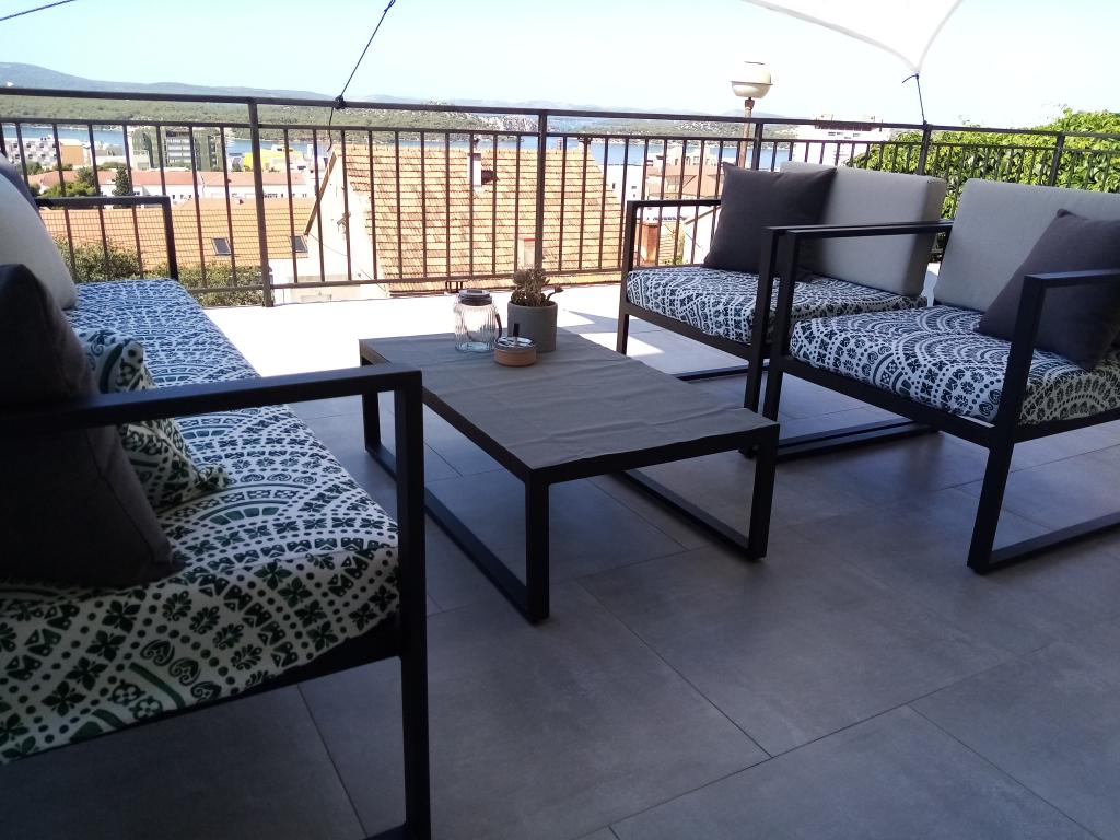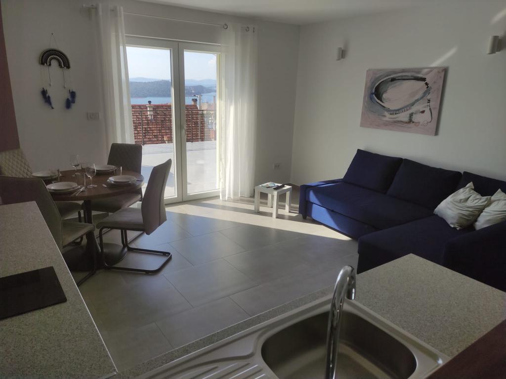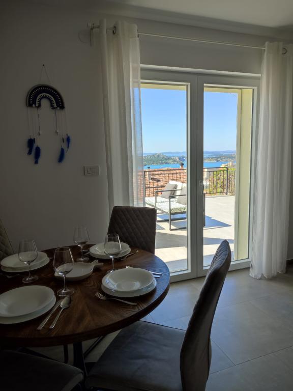 Apartament într-o zonă liniștită a orașului Šibenik Apartamentul este situat la 10 minute de mers pe jos de orașul vechi din Šibenik și în imediata apropiere a tuturor facilităților orașului. Marea este la 500 de metri, iar cele mai apropiate plaje sunt la doar 5 minute de mers cu mașina. Apartamentul este complet mobilat și dotat cu toate facilitățile și are acces la o terasă cu vedere frumoasă la golful Šibenik și la oraș.