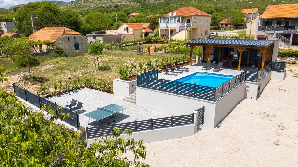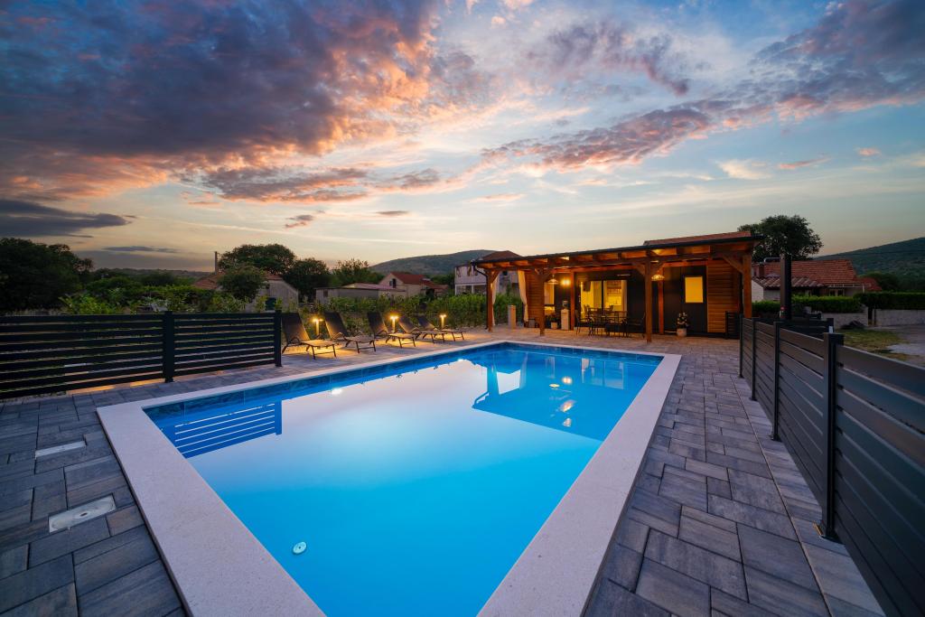 Rulotă complet utilată și modern, la țară, în mijlocul naturii. Dispunem de o piscină mare încălzită de 4×8 și cu o adâncime de 150 cm. Piscina este privată și înconjurată de un gard și verdeață. Avem o curte mare, într-o parte existând un spațiu pentru relaxare, tenis de masă și o trambulină pentru cei mai mici. Proprietatea este situată la 23 km de centrul orașului, la 20 km de plajă, la 35 km de aeroportul din Split și la 30 km de Parcul Național Krka. În imediata vecinătate, la 7 km se află intrarea pe autostradă. Šibenik este un oraș bogat în moștenire istorică și are nu mai puțin de 4 culturi puternice.