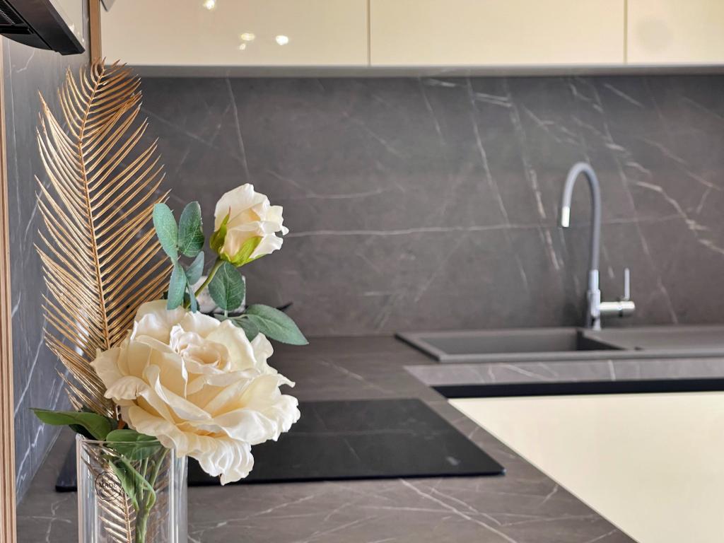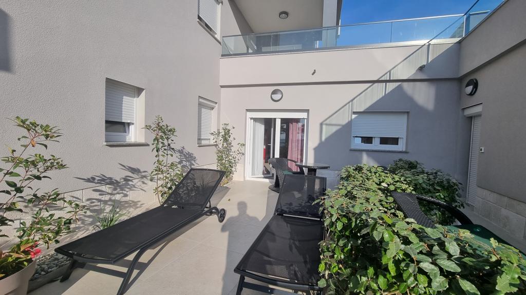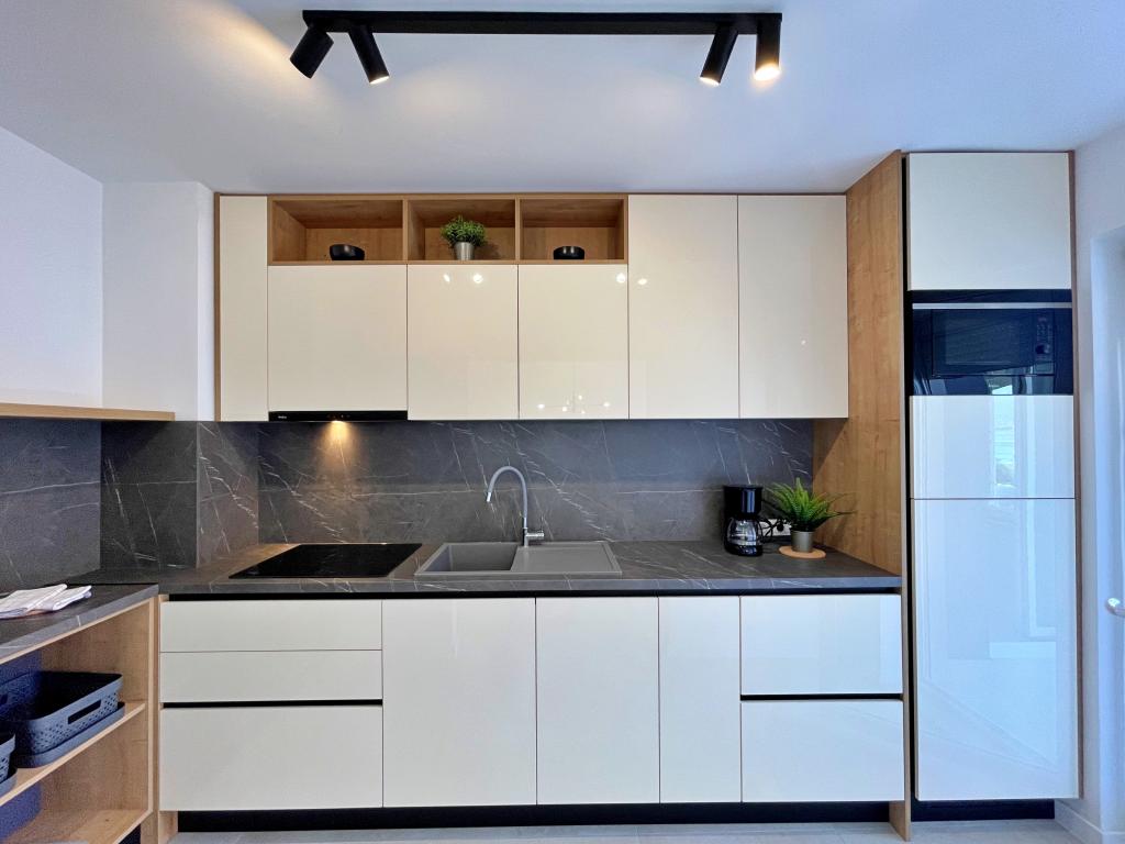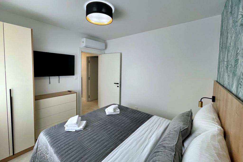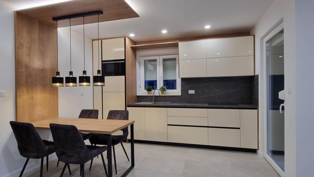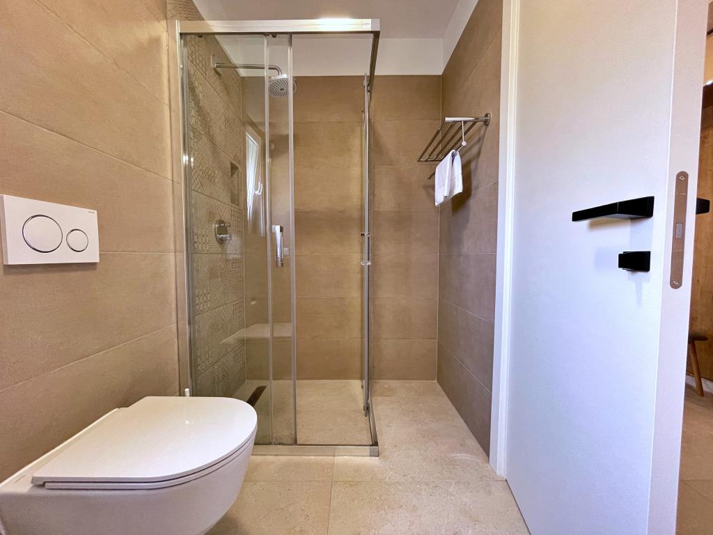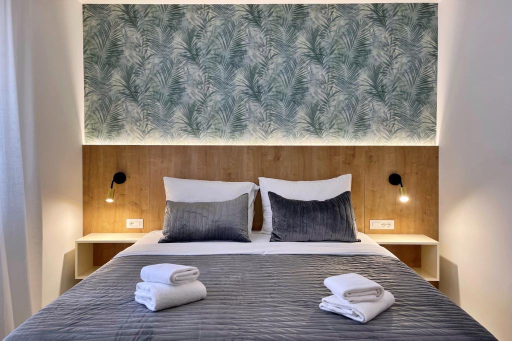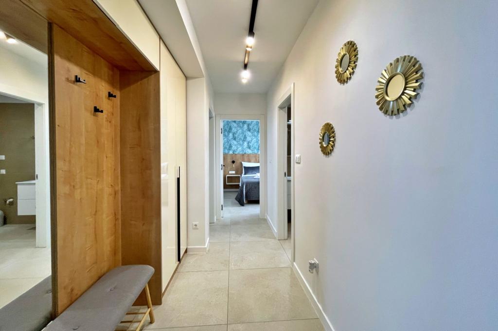 Aceste apartamente de lux cu vedere la mare sunt situate într-un complex de clădiri într-o locație liniștită. Toate apartamentele sunt dotate modern cu două sau chiar trei aparate de aer condiționat și televizoare inteligente în sufragerie și dormitoare. Cladirea dispune de o piscina mare cu apa sarata (36 m2) de uz comun, si este deschisa din mai pana in octombrie, cu temperaturi care ajung de obicei la 20-26°C Cladirea are in total 12 apartamente. Imobilul dispune de parcare privată complet împrejmuită. În imediata apropiere se află o plajă mare cu pietriș, iar în clădirea alăturată se află un restaurant excelent care oferă și o selecție de specialități locale. Toate apartamentele sunt dotate cu plită cu inducție, frigider cu congelator, ceainic, filtru de cafea, prăjitor de pâine, mașină de spălat vase și cuptor cu microunde. Zona de lângă piscină este dotată cu șezlonguri, umbrele și duș în aer liber. Wi-Fi este disponibil gratuit în întreaga clădire.
