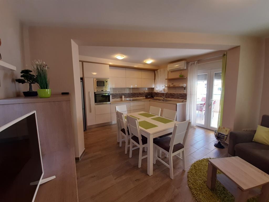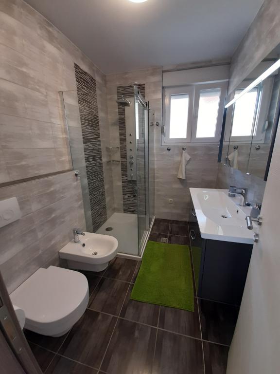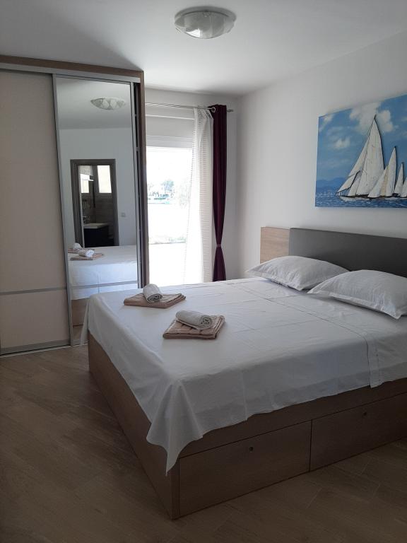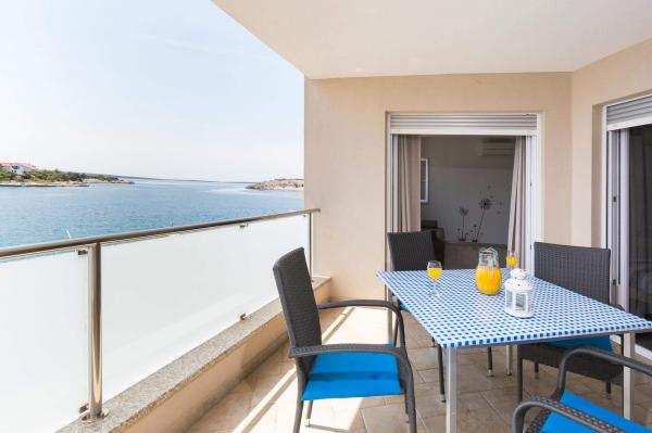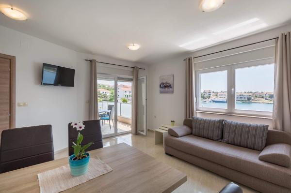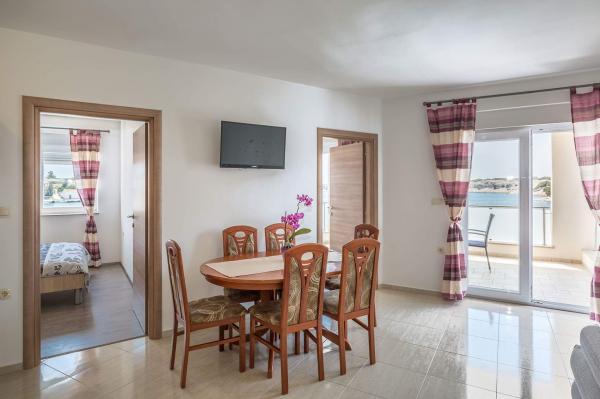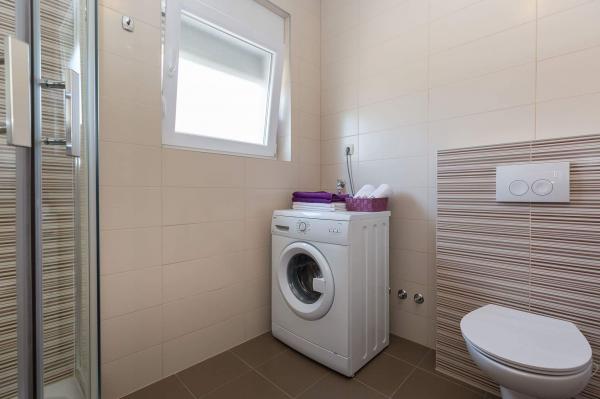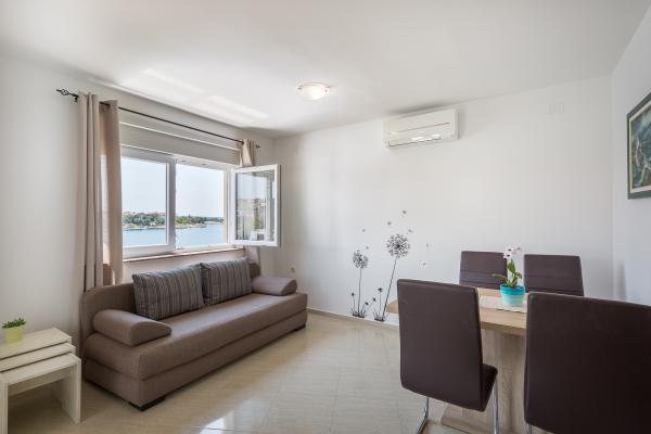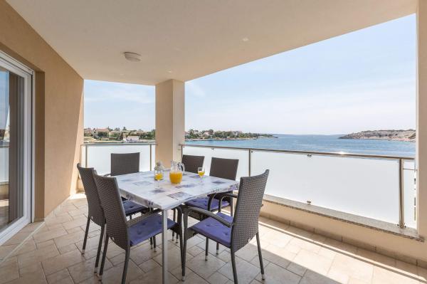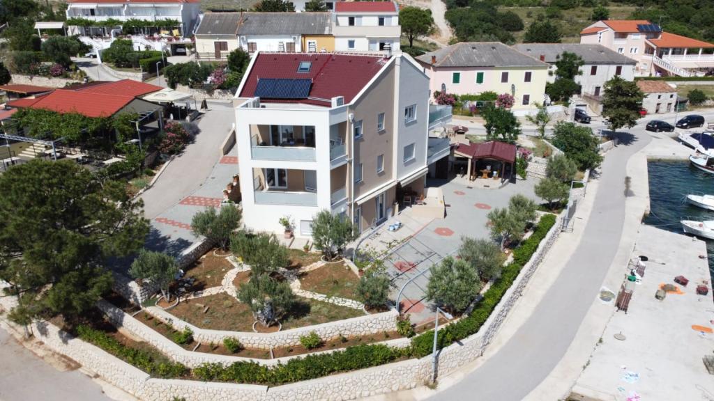 Apartamentele noi și complet echipate sunt situate în micul sat de pescari Šimuni, ideal pentru o vacanță de familie. Fiecare apartament are propria sa terasă acoperită cu vedere frumoasă la mare. In curtea casei se afla un gratar, un dus de gradina. Este asigurată parcare pentru mașină. In imediata apropiere a apartamentului se afla un magazin, o piata de peste, restaurante si o casa de schimb valutar.