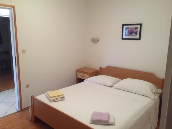 Casa noastră conține 5 apartamente complet echipate, cu terase cu vedere la mare, situate chiar în centrul orașului Šimuni. Conținutul comun al tuturor apartamentelor este camera din subsolul casei, zona de grătar și spațiul din grădină pentru odihnă. Camera de la parter este disponibila pentru toti oaspetii care au un TV, toaleta, un bar si mese cu banci, servind oaspetii odihna zilnica, vizionarea TV, citit ... Aria de gratar asa-numita. șemineul este dotat cu o grătar unde se află o chiuvetă, o zonă de lucru și mese sub boltă, iar zona de grădină are o masă cu scaune înconjurate de copaci și flori și servește și pentru odihnă zilnică, mâncare, citire etc. spațiu de grădină, avem parcare proprie pentru mașini și, de asemenea, oferim și propriul nostru loc de parcare pentru bărci mai mici în mare. Facilitatea este situată chiar lângă un magazin alimentar local, piața de pește, restaurant și se află la o plimbare de 5 minute pe o frumoasă plajă de nisip care are o nuanță naturală de păduri de pin.