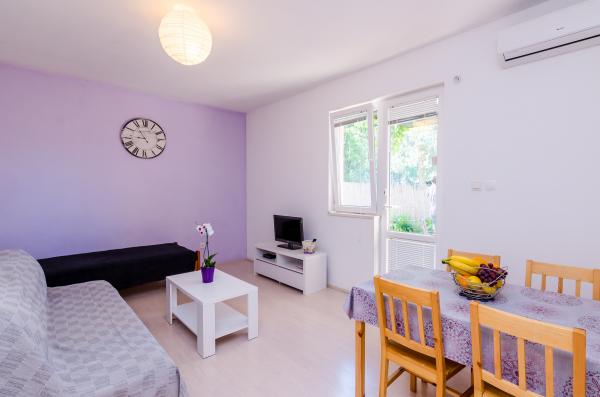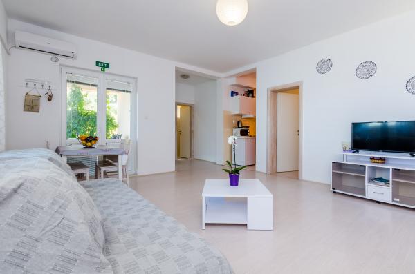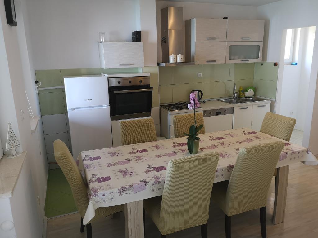 Apartamentele Kola sunt una dintre puținele unități de cazare care sunt de fapt PE PLAJĂ. Plaja este grozavă, potrivită chiar și pentru cei mai mici dintre copii. Este format din pietre mici, astfel încât să nu fie nevoie să folosiți pantofi de apă. Nu este aglomerație. Apartamentele Kola sunt spațioase, complet echipate, cu aer condiționat și curate. Apartamentul superior, mai mare, are o terasă frumoasă cu vedere frumoasă la mare. Ne-a încântat și grătarul din curte, care este încăpător, cu șezlonguri pentru a ne bucura de pădurea de valuri. Am dori în special să evidențiem prietenia și cordialitatea excepționale ale gazdei - a depășit absolut așteptările în a răspunde nevoilor și dorințelor noastre. Cu siguranta vom reveni.