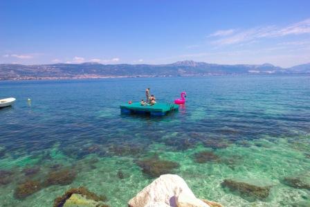 Apartamentele Katarina sunt situate pe insula Ciovo, la 5 km de Trogir, la intrarea în Slatina Insula Ciovo este conectată printr-un pod cu Trogir și conectată printr-o linie de 30 de minute de barcă la Split. Apartamentele sunt situate pe o pantă liniștită și însorită, departe de plajă, la 150m. Acestea sunt înconjurate de o grădină închisă cu măslini, viță de vie și alte plante medicinale. Apartamentul A6 1 are 72 m2, 3 dormitoare, bucătărie cu living, 1 baie și o toaletă separată. Apartamentul are două balcoane spațioase cu vedere la mare. Apartamentul A2 2 are 43 m2, 1 dormitor, bucătărie cu living, terasă la baie de 40 m2 cu vedere panoramică la Golful Kastela și Split. Parcarea este oferită în curte. În curte există un grătar, mobilier de grădină și un duș de grădină comun. Posibilitatea utilizării unei mașini de spălat.