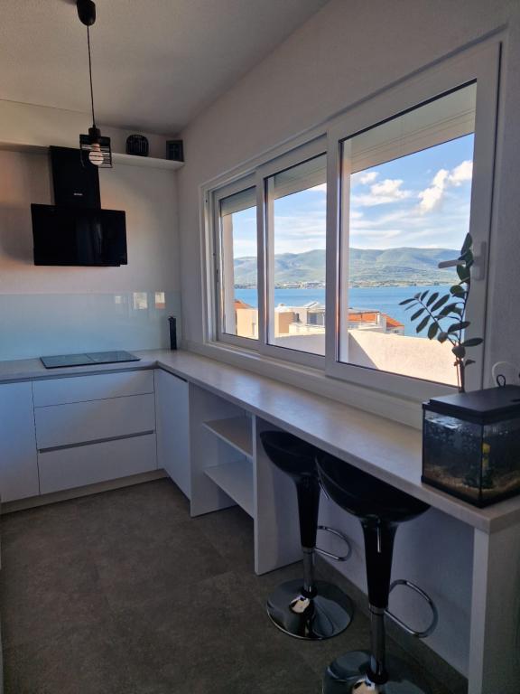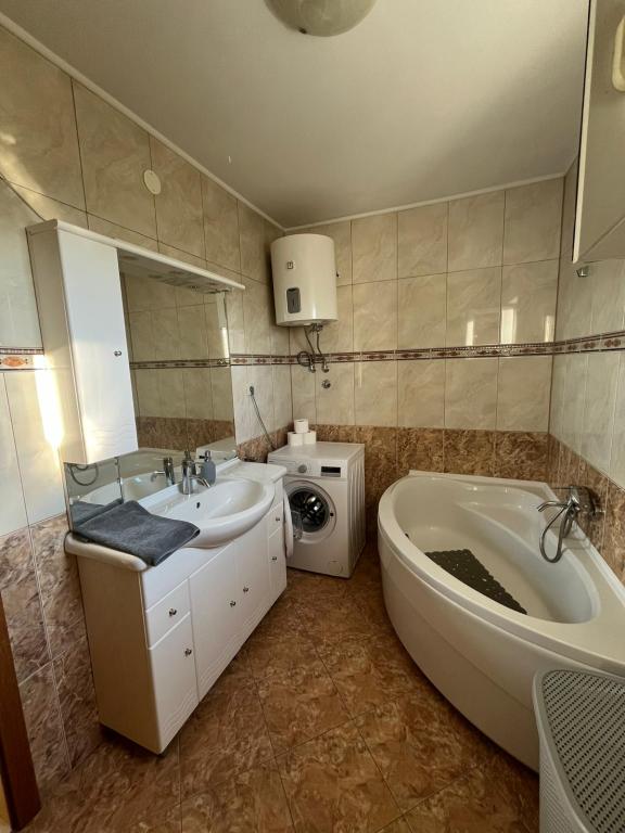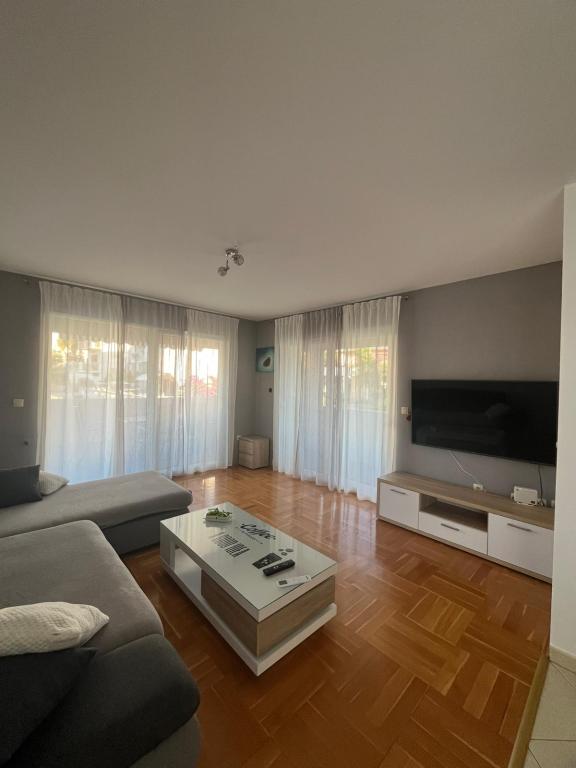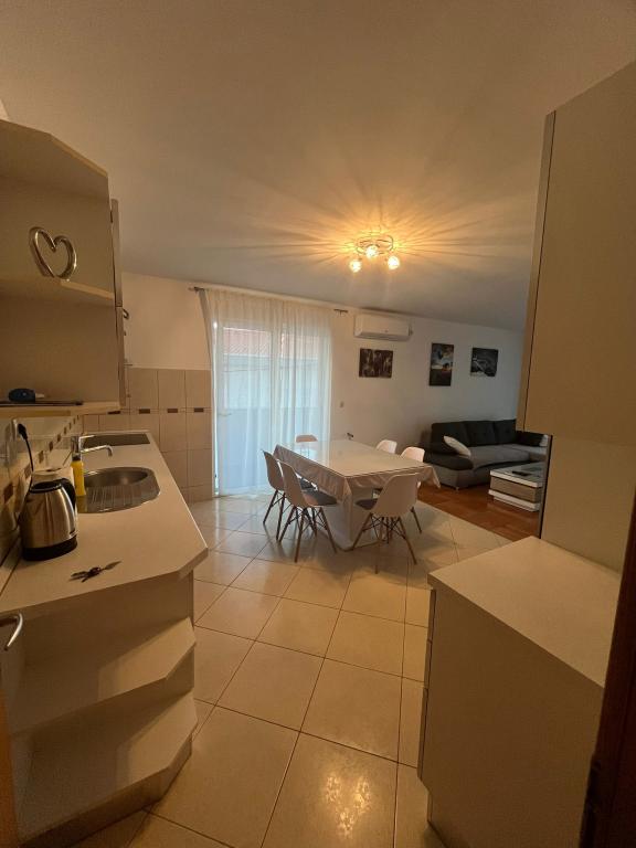 Apartamentul este situat într-o locație liniștită, în satul Slatina. Din centrul orasului este 2 km. distanta de călătorie de la plaja este 60m. Apartamentul are trei dormitoare, bucatarie, sala de mese, living, baie ... Are de internet, prin satelit, mașină de spălat, mașină de spălat vase, ...