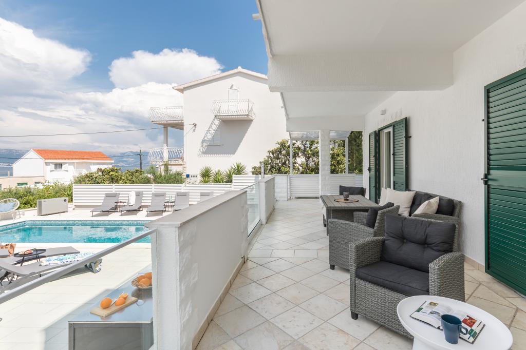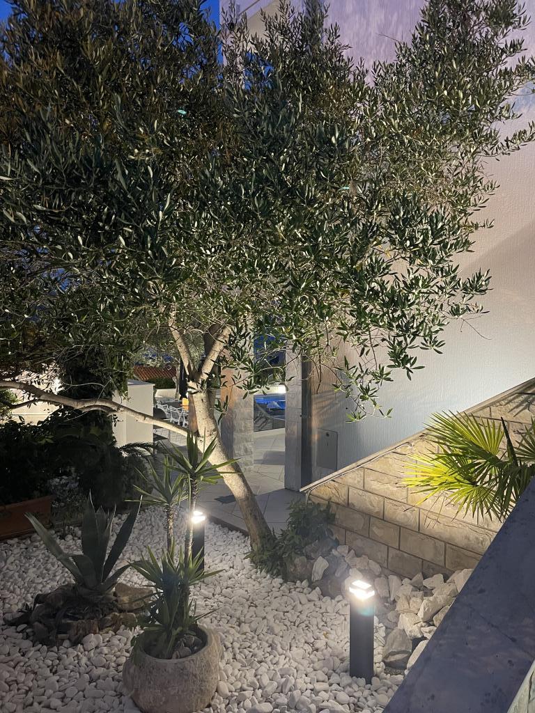 Taxa de rezidenta nu este inclusa in pret.Tocmai ne-am întors din stațiunea noastră de vară Slatine. Pentru a evita „mulțimea nebună” de pe autostrada croată și de la casele de taxare, cu inima grea ne-am scurtat vacanța anuală cu o zi și am reluat vineri. Cu inima grea, pentru ca toti am fost foarte multumiti de aceasta frumoasa cazare. Eram 5 adulți și 3 copii în apartamentele A și E. Totul este frumos decorat nou, camere mari, astfel încât toată lumea să se poată bucura de intimitatea lor. Piscina grozavă și, de asemenea, o cadă de masaj. O masă frumoasă cu fotolii confortabile și, de asemenea, o mulțime de șezlonguri. Lângă piscină există o mică bucătărie în aer liber cu 2 grătare cu cărbune. Plaja este la 2 minute, cu pietricele albe si deci ideala pentru copii si batrani. Nu este aglomerat. Apartamentele sunt locuite de oaspeți drăguți și există suficiente locuri de parcare disponibile. Una peste alta, tot ce ți-ai putea dori pentru o vacanță grozavă, minus ambuteiajele - dar există și Aeroportul Split chiar vizavi, pe continent. Oricum, mulțumesc foarte mult Marina pentru șederea noastră minunată. Familia Schumich din Austria