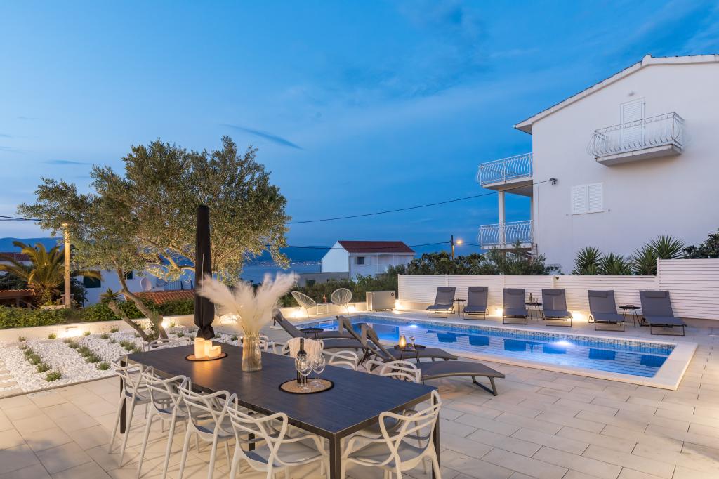 Noi am fost oaspeți ai doamnei Ivanka 25.07.2016-04.08.2016 apartament frumos, foarte bine echipate, spațioase, curate, moderne. Situat foarte aproape de mare, plaja mare, cu pietriș, cu o coborâre blândă la mare. Casa are o grădină frumoasă cu grătar și masă. Zona foarte linistita, 100m economat bine aprovizionat 100m de bar. Pentru Trogir puteți ajunge cu taxiul de apă persoană 20 kN. Dna Ivanka este Kindest persoana care îngrijește oaspeții lor - toate la cel mai înalt nivel. Foarte recomandată. Ivanka vă mulțumesc pentru ospitalitatea ta Sylviei I Radoslaw opalscy