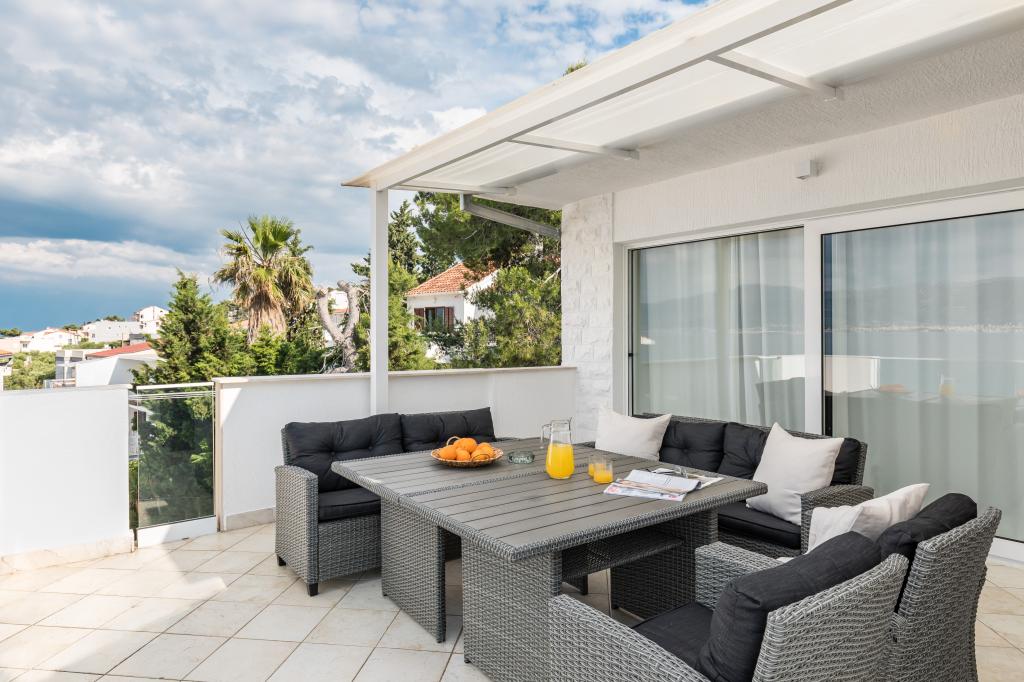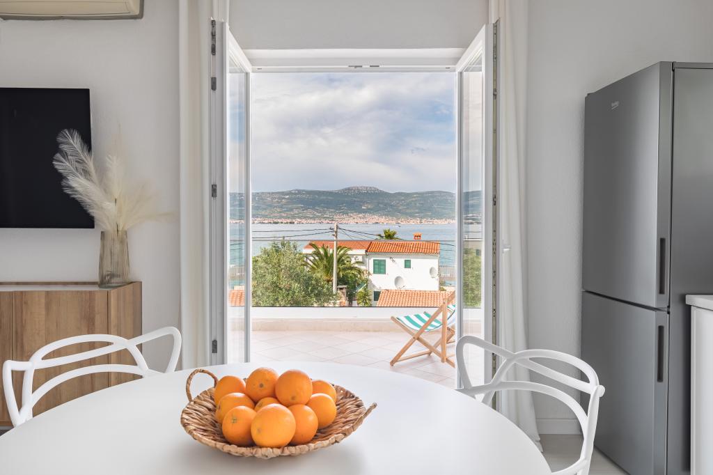 Apartament frumos si curat. Am stat aici o săptămână la mijlocul lunii octombrie ca o familie de 5 cu copii mici și este foarte recomandat datorită locației frumoase și liniștite chiar pe plajă. Am închiriat o mașină la aeroport și veți avea nevoie de ea pentru excursii de o zi în diferite orașe, cum ar fi Trogir, Split, Omis și cascadele de la Krka. La toate acestea se poate ajunge la o distanță rezonabilă cu mașina. Plaja are un bar drăguț la doar câteva minute de mers pe jos unde puteți petrece o după-amiază minunată. Marina este o gazdă prietenoasă care ne-a primit la sosire și ne-a ajutat să dăm sfaturile necesare prin WhatsApp. Cu siguranță vom reveni aici din nou!