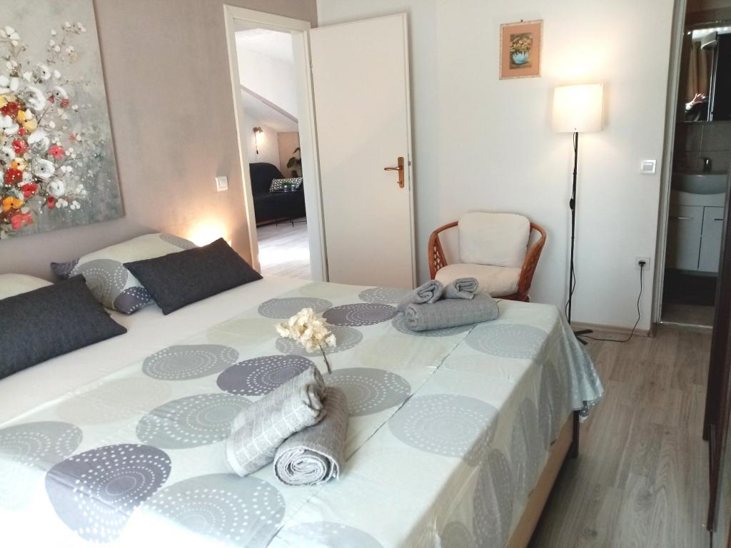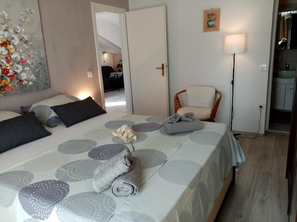 APARTAMENTE SILVA / Trogir-insula ČIOVO / în CENTRUL unui mic oraș de pescuit și turistic, pe insulă, insula este legată printr-un pod de orașul TROGIR - oraș UNESCO. Insula Čiovo se află la 10 km de autostradă și la 10 km de aeroport, ceea ce reprezintă o comoditate semnificativă pentru călătoriile turistice din toate părțile UE și ale lumii. Apartamente chiar în centru, locuri, dotate suplimentar, un loc plăcut și liniștit pentru odihnă. Apartamentele au vedere la mare. Toate facilitățile sunt la 50-100 m distanță (plajă, piață, cafenele, restaurante, tavernă, pizzerie, parc de distracții pentru copii, loc de joacă pentru sport, toate facilitățile pentru distracție pe mare, închiriere de biciclete, scutere, bărci, excursii cu barca pe insulele din apropiere. . .). Mediul spatios al apartamentului este in stil mediteranean, cu parcare privata, gratar exterior, dus solar exterior... . Dacă vă decideți să vă petreceți vacanța în apartamentele noastre, credem că ne veți recunoaște drept gazde plăcute și binevoitoare. Bun venit